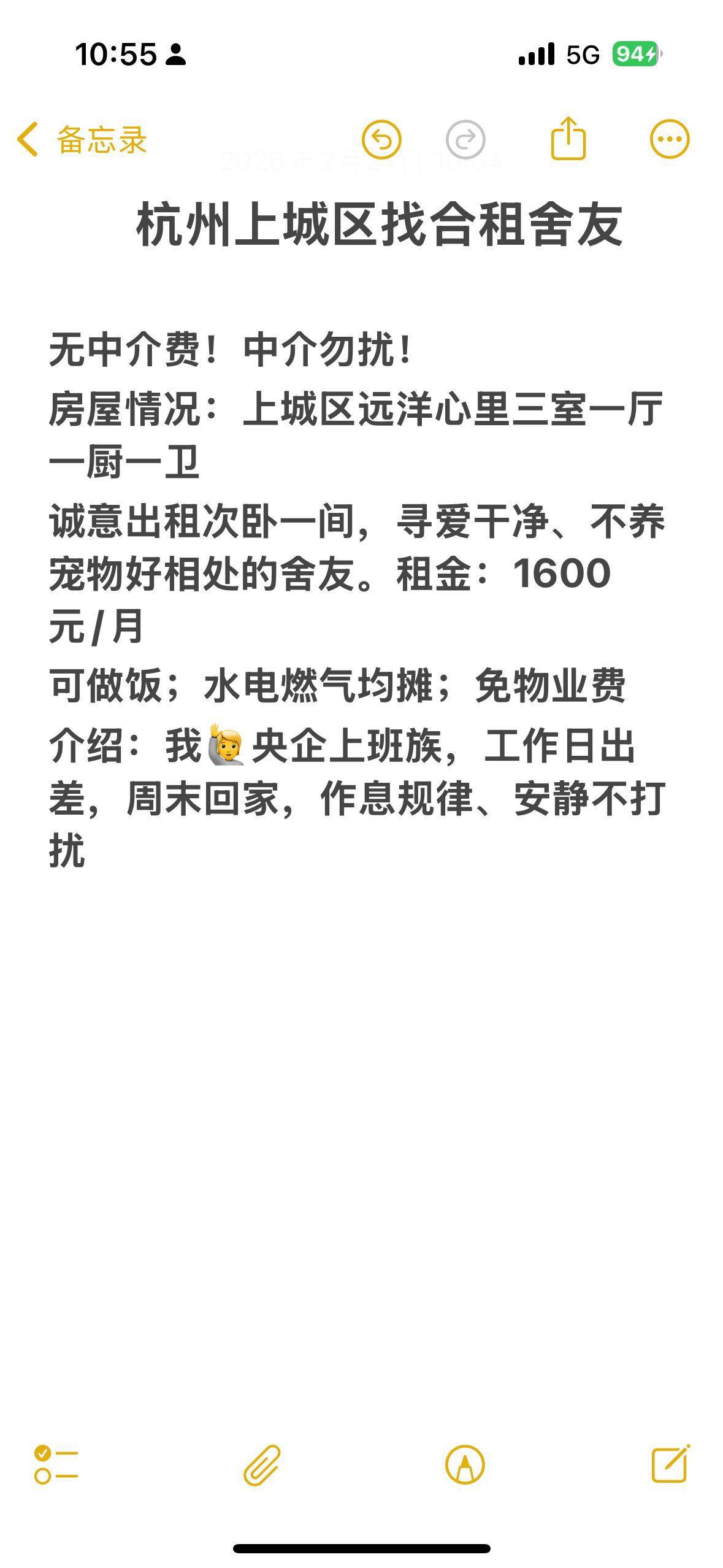 Rent : 1600RMB/M