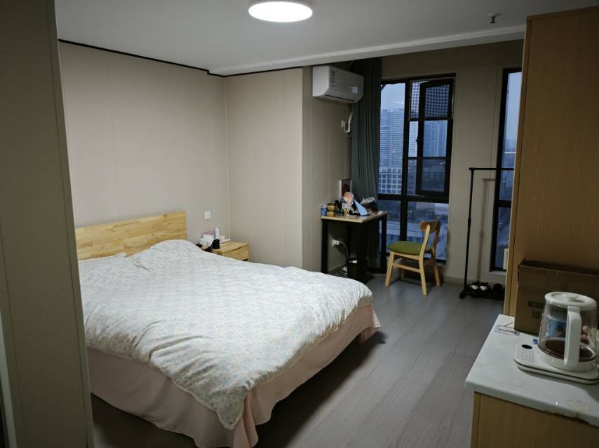 光谷中心城海麟青年公寓品质一居室 【户型区间】单人间,套内面积25平方米;【户内装修】精装修交付,拎包入住,带窗,合同签了一年2026年9月份到期,原本是1350每月(包含50块物业费)压一付三,水(4.8元一度)电(1块钱1度)由于本人工作调动原因,价格可以在协商,有自愿可电话联系,程女士