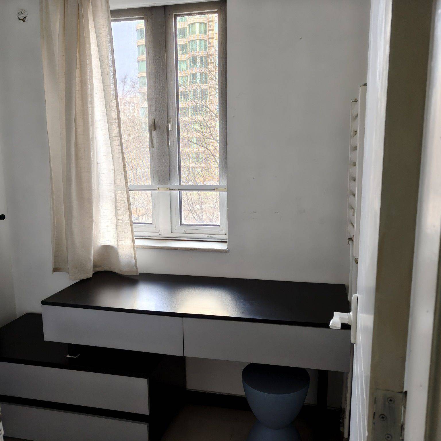 Duplex with 2 bathrooms. First floor: living room, kitchen, toilet. Second floor: study, bedroom, bathroom with toilet. 5-minute walk to Communication University of China Station on Metro Line 1. Clean, tidy, elegant and minimalist design. Ideal for daily living and entertaining guests, with private space