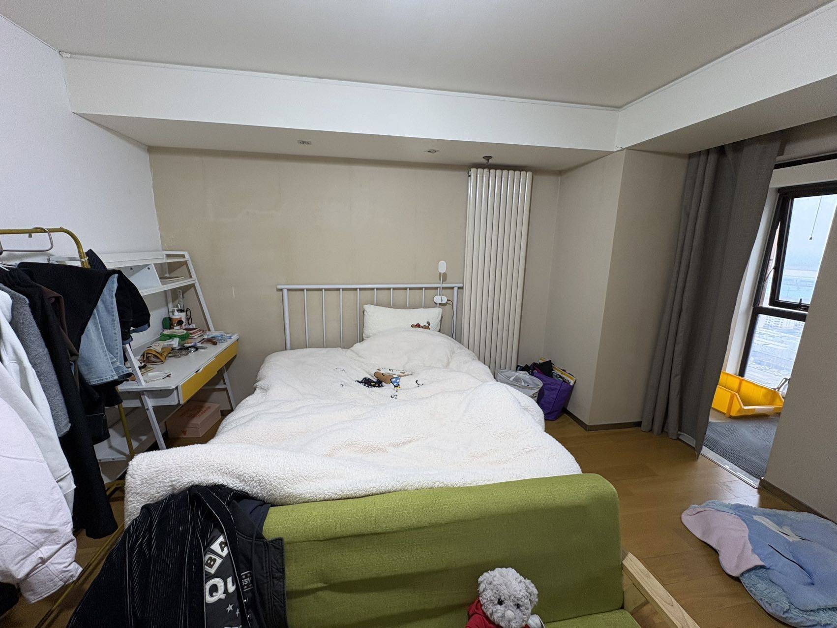 马驹桥合生世界村转租,可短租,9月到期 I区17层,正南向,超大落地窗,有个小阳台 月租1600,复式6户,很大,楼下3家,楼上3家,楼上主卧是独卫,剩下两家用一个卫生间,但基本就是自己一人用 合租室友房间都很安静。小区对面就是商场吃饭看电影逛街,楼下全新开业永辉,两分钟到