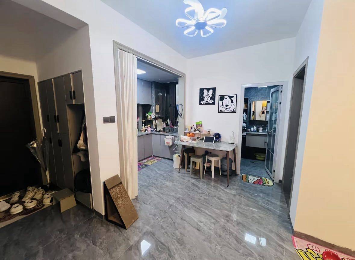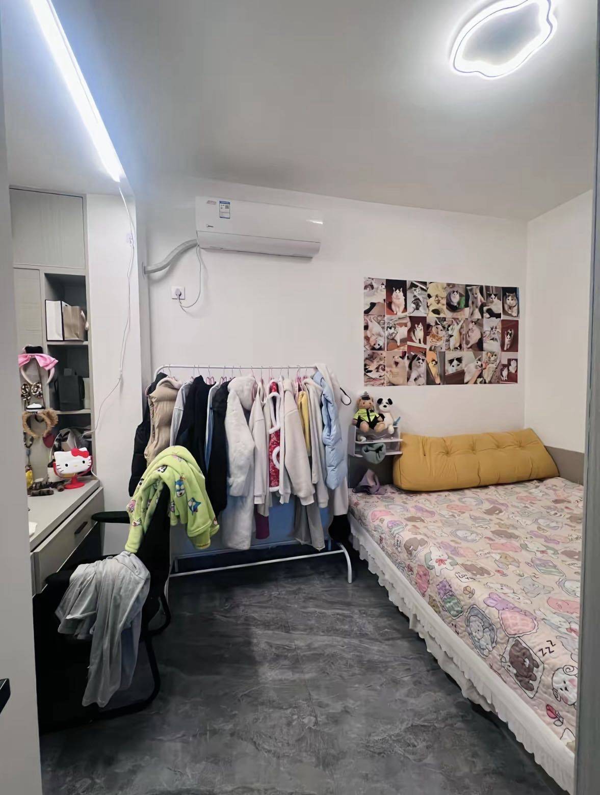 这是一套精装的小房子,被子 枕头 床单 锅碗瓢盆都有,门口也有鞋柜和挂衣服的,暖气和空调都有,真的很不错诶