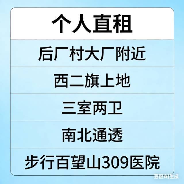 后厂村大厂附近个人直租照片是中介直拍的,有什么问题可以私信。 车位:带地下车位。 位置:小区后厂村大厂很近,以腾讯总部大楼为例,骑行和开车都在10分钟内。 户型:图片里一楼主卧和客厅的位置进行了调整,三室两卫,公共空间大,顶楼带阁楼,南北通透,适合多口之家或合租。 生活:附近超市、菜场、餐厅、水果店等生活所需齐全,离百望山和309医院都是步行可达,生活便利,幸福感强。 租期:4月起租,年签。 小区环境 1️⃣就医(重中之重):步行5分钟到301医院第八医学中心[原309]。小区院内社区医院,可社保,开药看病非常方便,还有理疗项目。对于有孩子家庭,可院内完成所有疫苗接种工作,省心便利。 2️⃣小学,中关村一小。周围多家幼儿园,中科院第七幼儿园,红樱等。 3️⃣生活,紧邻两家超市,楼下就是菜市场。汽车修理,美容美发等。下楼即可完成生活所需要求。 4️⃣休闲,楼下即是小区公园,配备康体设施,跑道,乒乓球篮球等一系列健身场地及设施,儿童滑梯等,可满足各年龄段休闲需求。