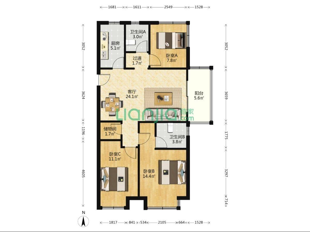 Rent : 2700RMB/M