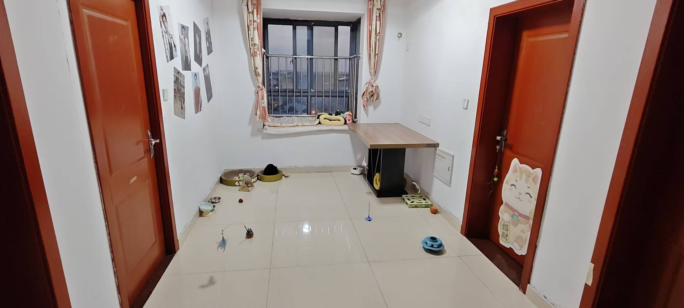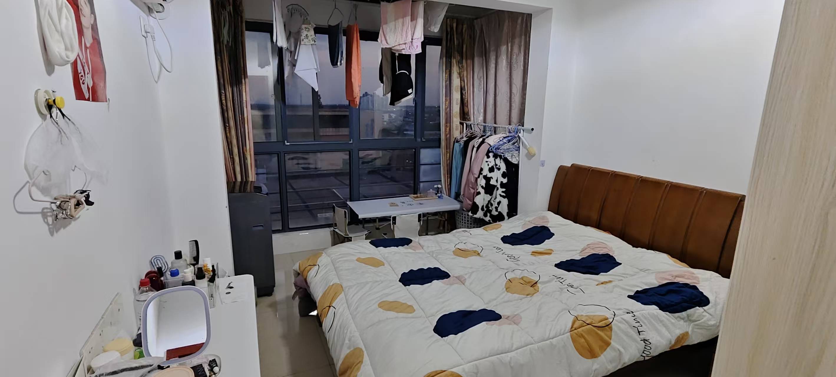 房间里的那个大阳台晴天的时候阳光很好,可以在那放一个懒人沙发躺在上面晒太阳很舒服,客厅的飘窗和另外一个房间的飘窗采光也很好,都是朝南的,住着很舒服,本人因为工作需要得搬去其他城市,住到3月底20号,有意的欢迎来哦!