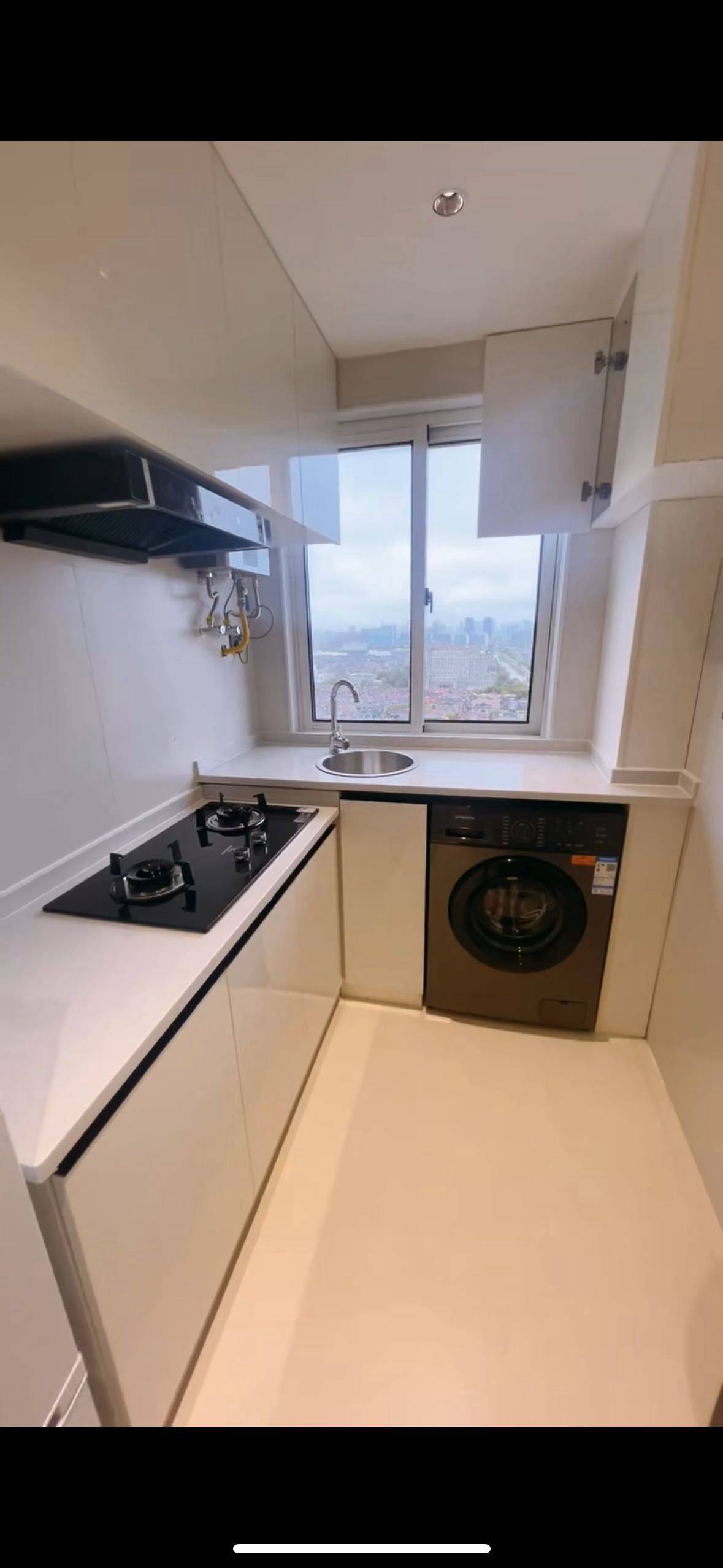 17楼,一居室,有独立的厨房和卧室,押一付一,月租2500¥/月。燃气厨房,燃气热水。电费一块一度,物业费什么得都包含在房租里