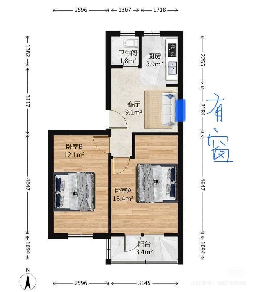 2 臥室/1 洗手間