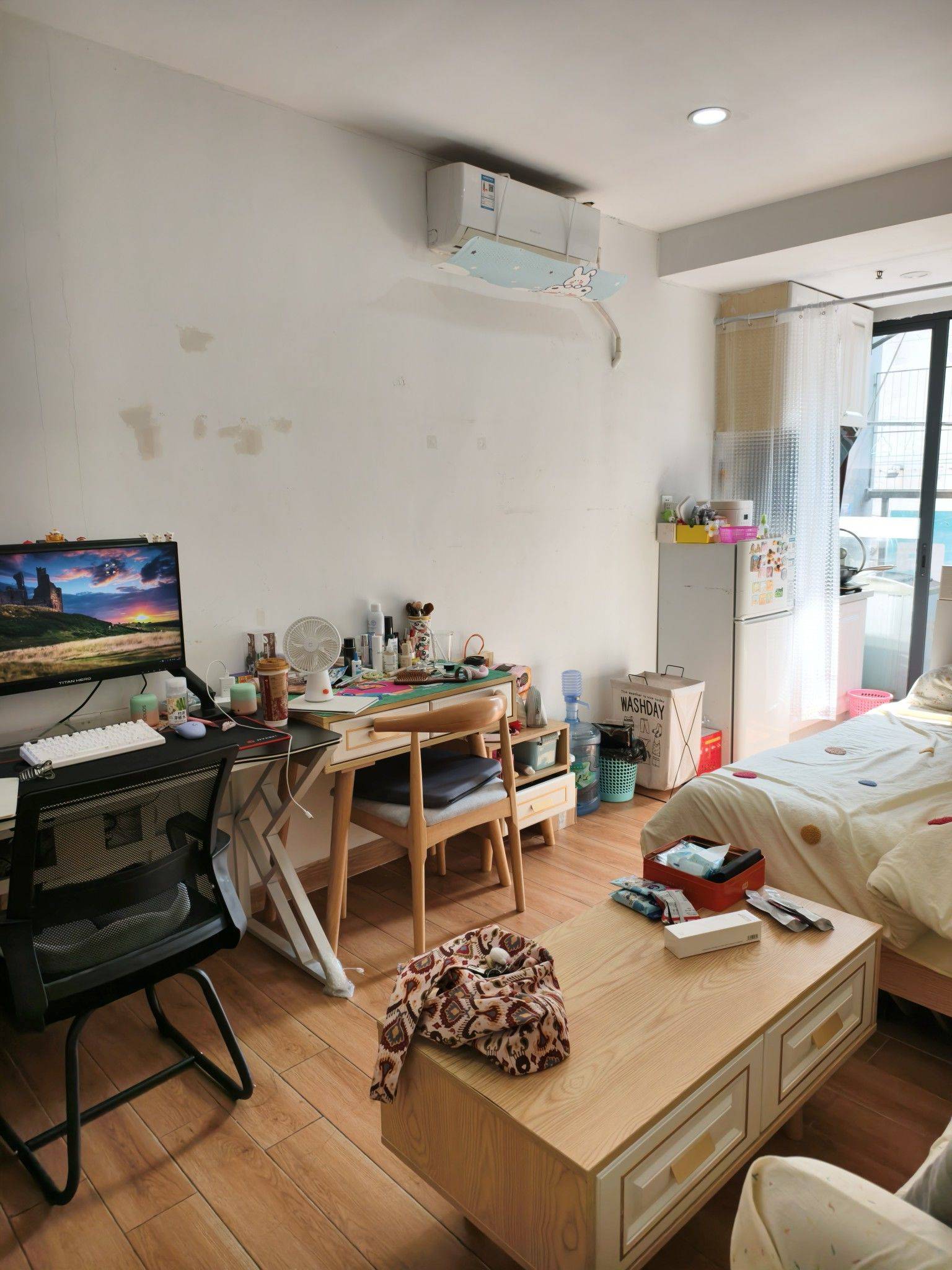 个人急转,有补贴 🌇 路边独栋,电梯2层,精装公寓单间 ☀️ 有阳台,采光特别好,对面楼间距2车道以上,卫生间挺大,有厨房可做饭。油烟机,洗衣机,冰箱等家电一应俱全,直接拎包入住即可,近固戍F口,近公园小吃街 🍎 合同到10.1,3月底搬,剩余租期6月,适合短租过渡,到期可续签或直接走 🍊 水5.8 电0.98 🍐 月租1600+管理100+网络60=1760,个人补贴60/月,到手1700全包,3月入住可免租金,无中介费 🍠 电竞桌(1.4m*60cm)、椅子想要可送 🐱 宠物友好 视频是入住前拍的空房视频