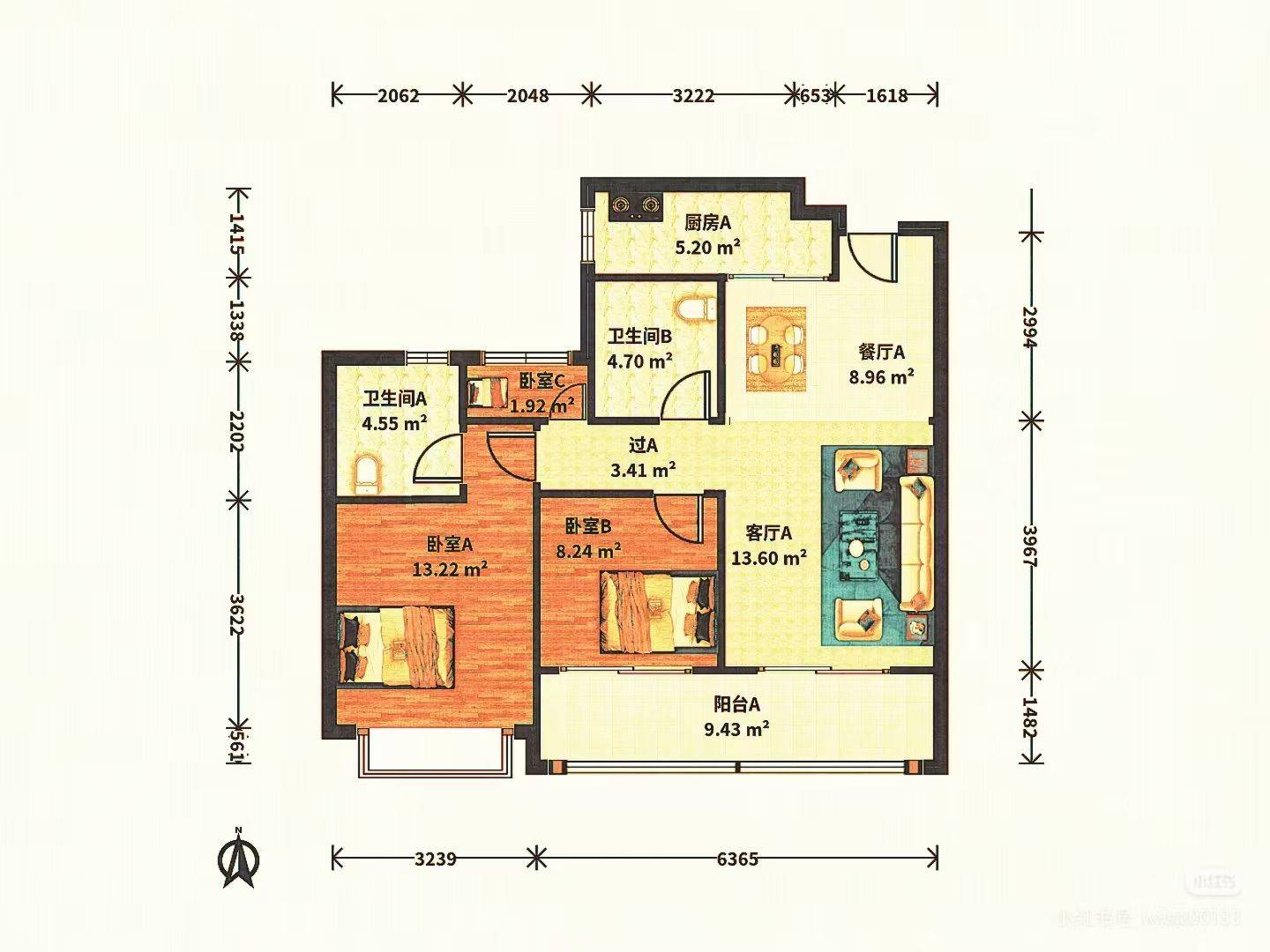 出租主卧带独卫 卧室A是主卧 公共区域共用 只收1k押金