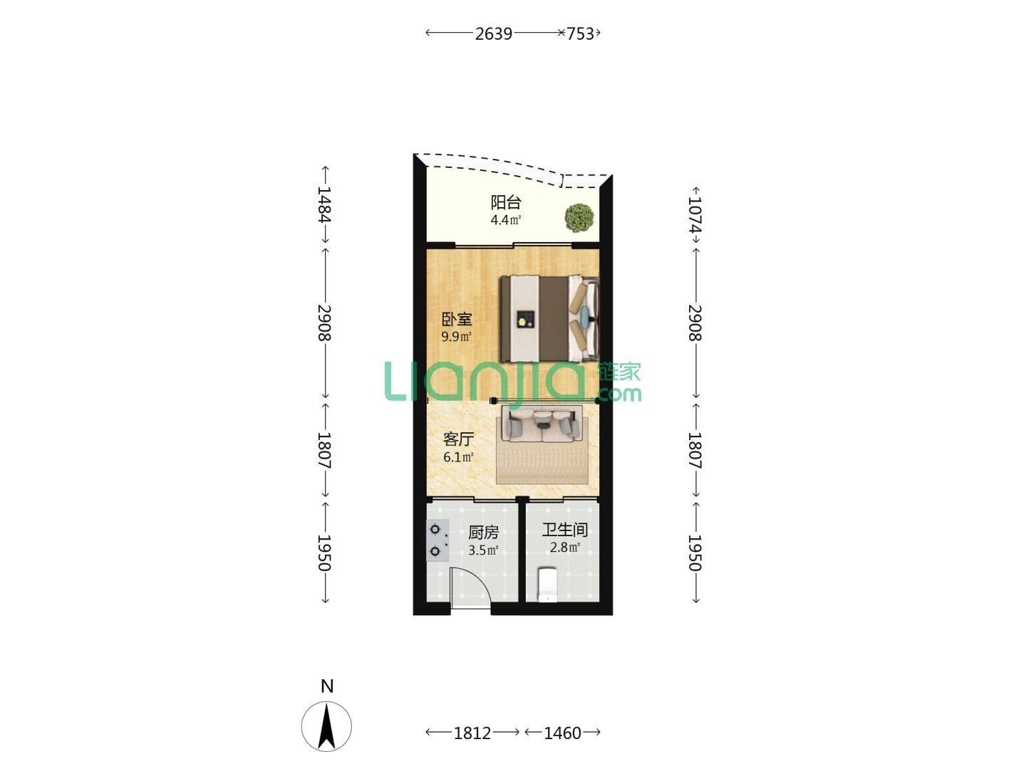 Rent : 2200RMB/M
