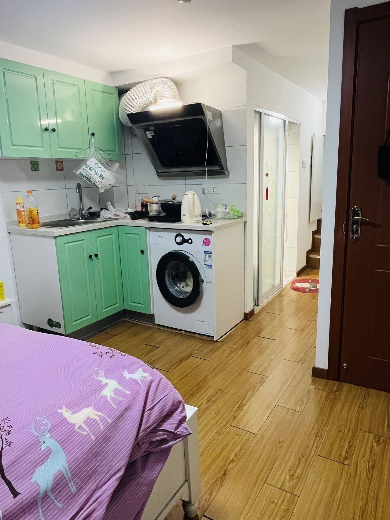 • 房子在十楼的上层,楼层不低,白天阳台上太阳能照进来,有落地衣架,可以在阳台上晒被子。 • 房间内电器有洗衣机、电冰箱、油烟机、空调、电磁炉,有单独一个小房间的衣柜,储物空间很大。 • 房租1100每月,民水民电,押一付三,转租的话直接和房东签合同,我预计在三月底搬走,可以提前几天,房租从四月开始算,剩余租期到十二月底。