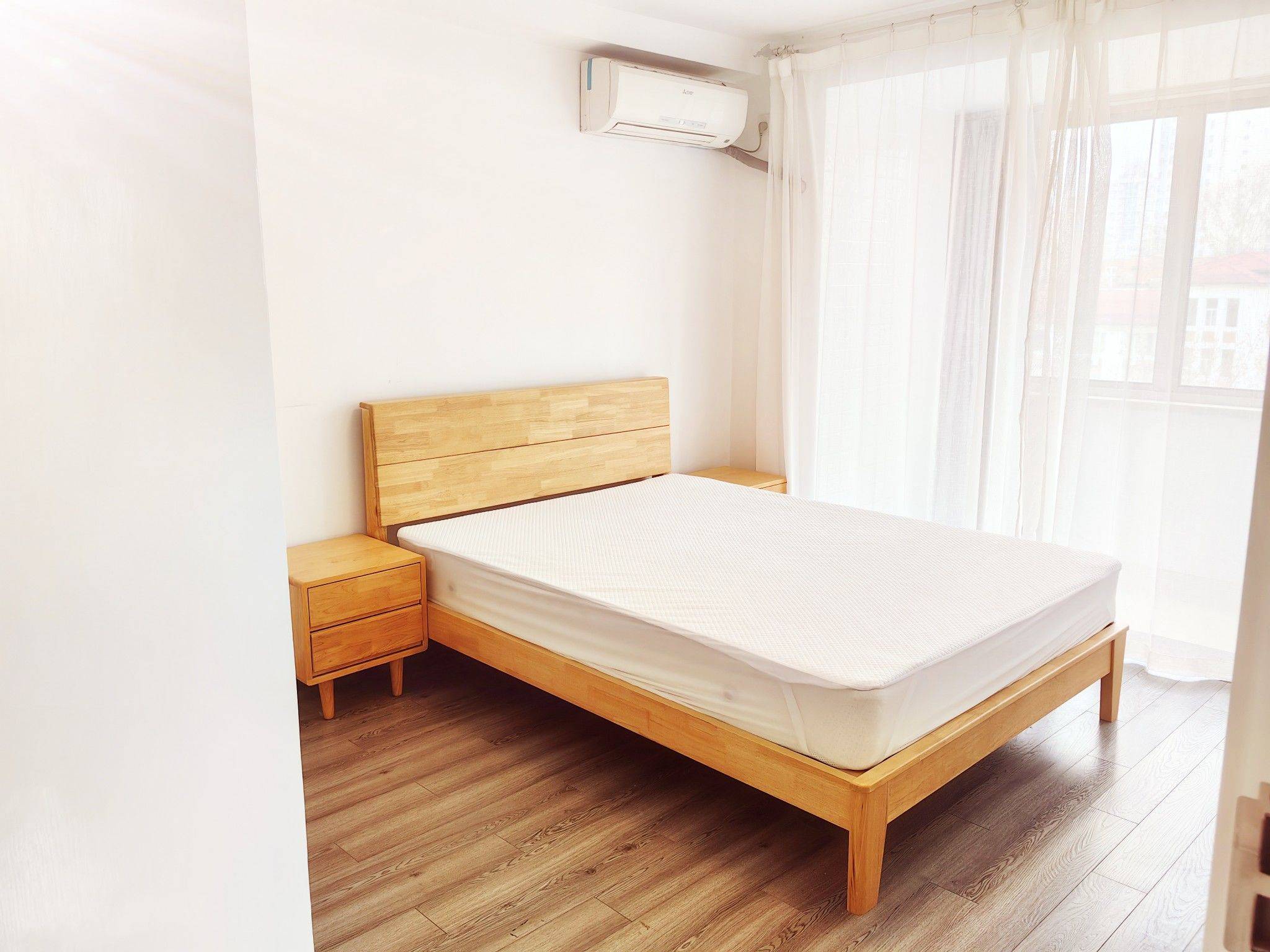 岳阳大楼一房,业主直租无中介费,可办居住证。双南西边套,阳光房,电梯、墙暖、空调、投影仪、烤箱、烘干洗衣机、沙发床、智能锁,楼下有超市、酒吧,建襄小学零距离。 地铁:嘉善路(6/9号)地铁站712m,肇嘉浜路地铁站 (7/9号)730m,衡山路地铁站1号661m。 娱乐、交通、教育、医疗配套完善,位于法租界建国西路上,环境幽静。 介绍完了房子,我要碎碎念几句,因为有很多细节是看不到的。虽然房子是用来出租的,但装修材料都是良心挑选。赚钱重要,客人的健康更重要。甲醛是我在装修阶段最关注的部分,可移动的所有家具都是实木的(卧室床前的白色柜子是前租客小姐姐宜家购入留下,如果不喜欢可以拿走)。尽量减少板材的使用,大橱和厨房吊橱的板材选的都是无醛实木板,房门是实木多层板。为了隔音保暖效果好,窗是中空双层玻璃。电器选经久耐用的,水暖炉子选的是博世,每个房间包括卫生间都有水暖终端。空调两个都是三菱电机,能耗少,制热制冷效果好,静音。下水都装有反逆阀,防止主管道的气味或者虫子反窜进家。客厅和卧室留了两堵大白墙,那是留给投影仪的,你可以选择躺在沙发上看电影,也可以选择躺在床上看电影。我家的几位客人,都很注重生活品质,我想,健康应该是最重要的吧。月租10500,有兴趣可私信。4.4可入住