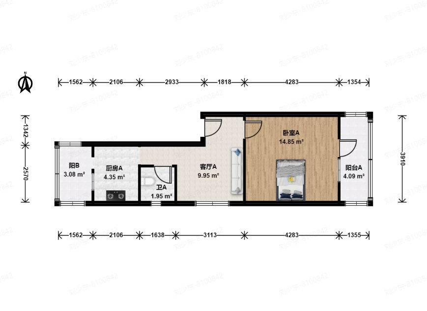 Rent : 3300RMB/M