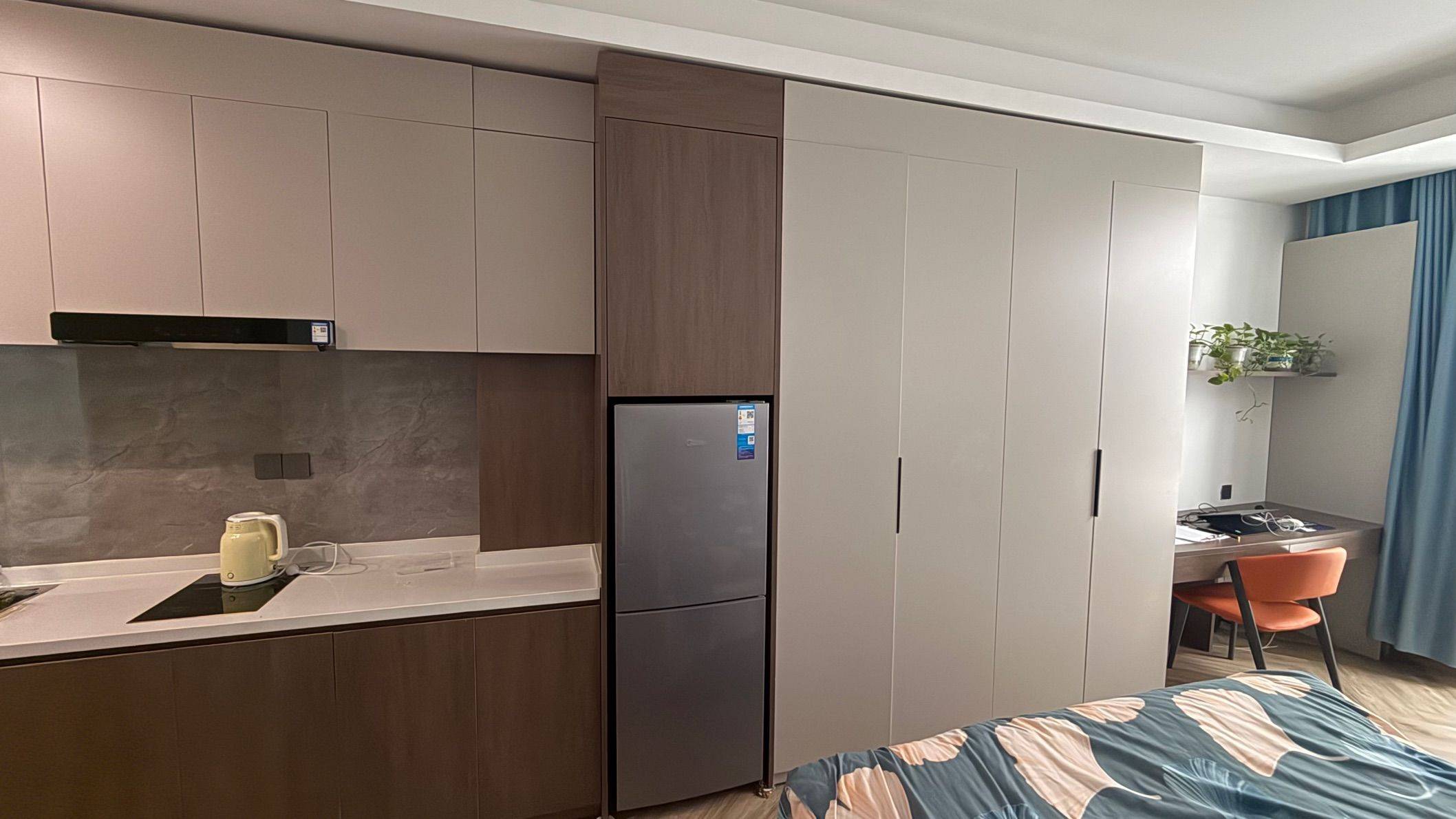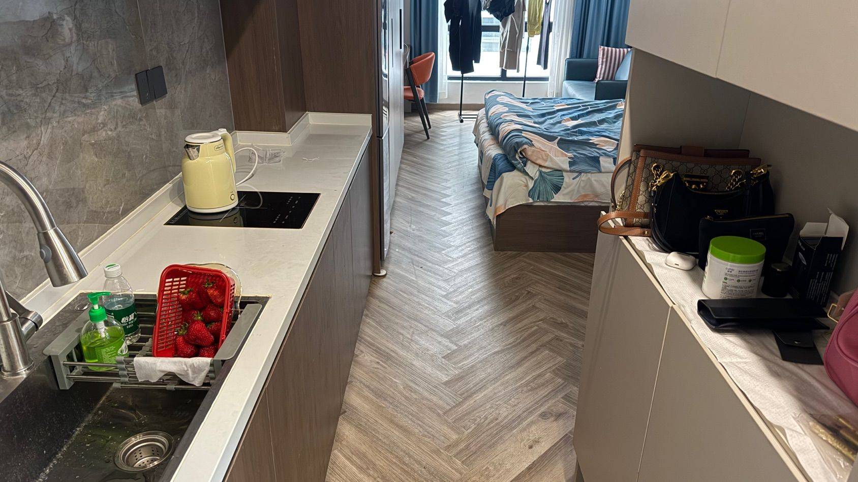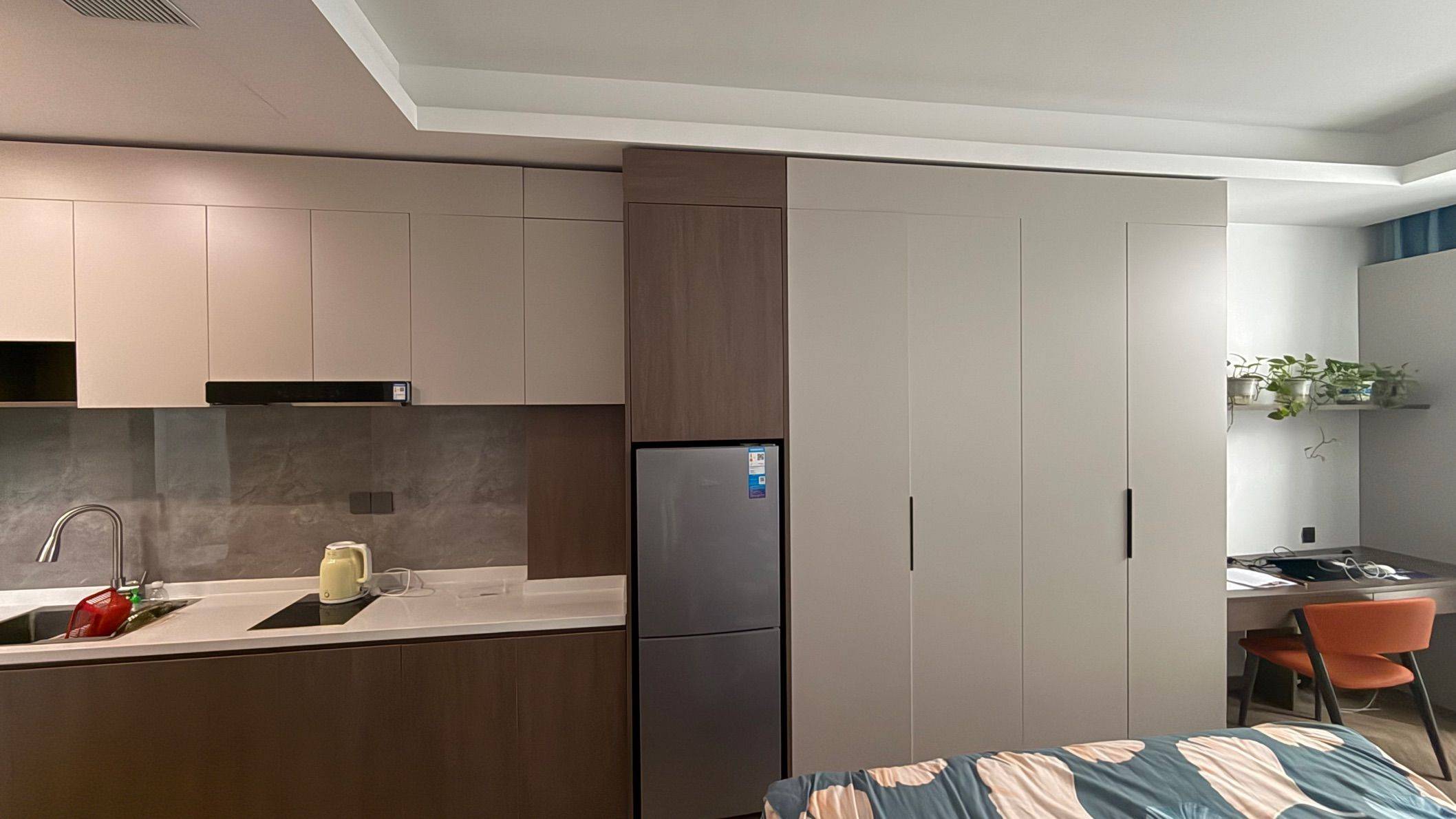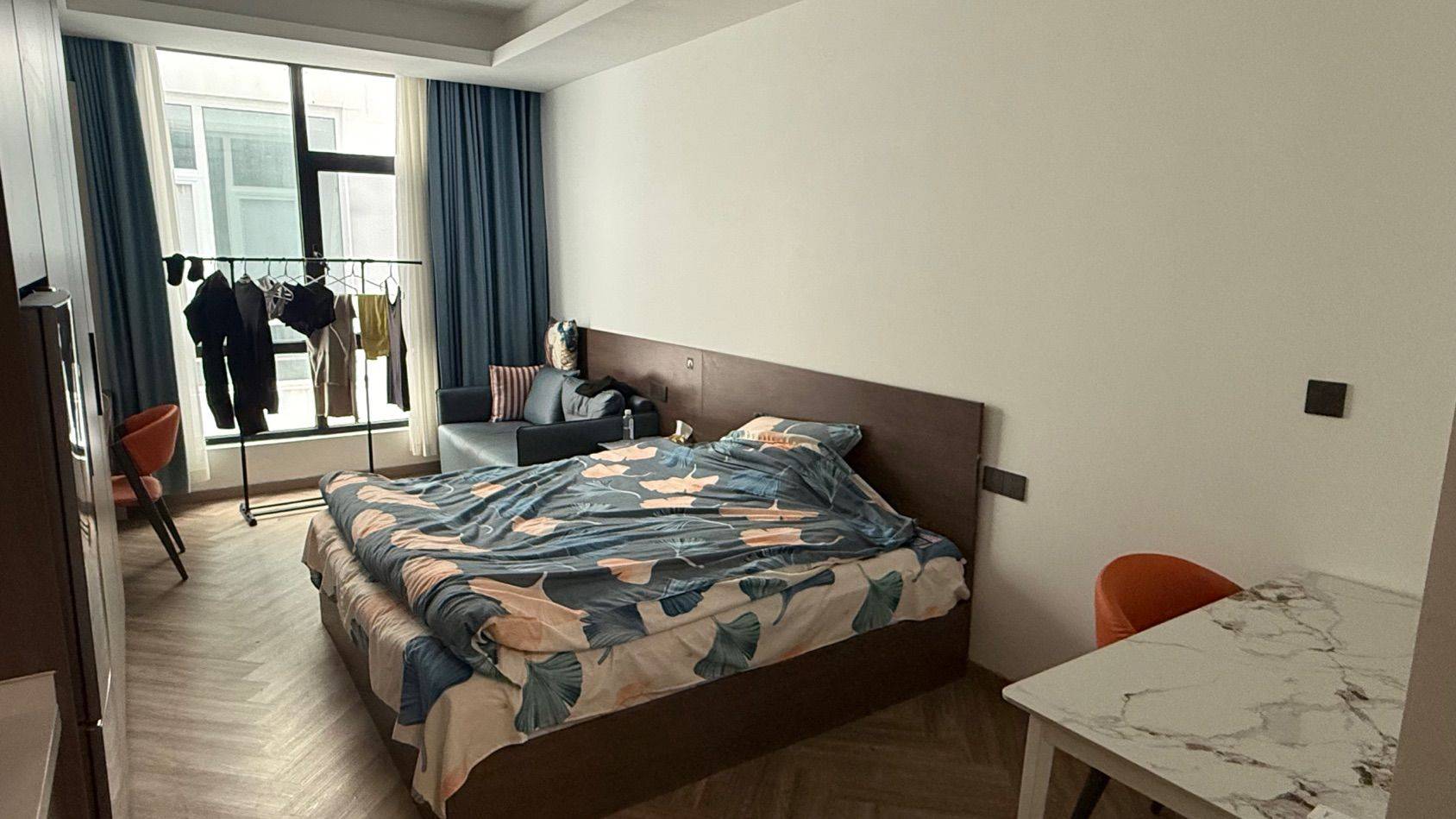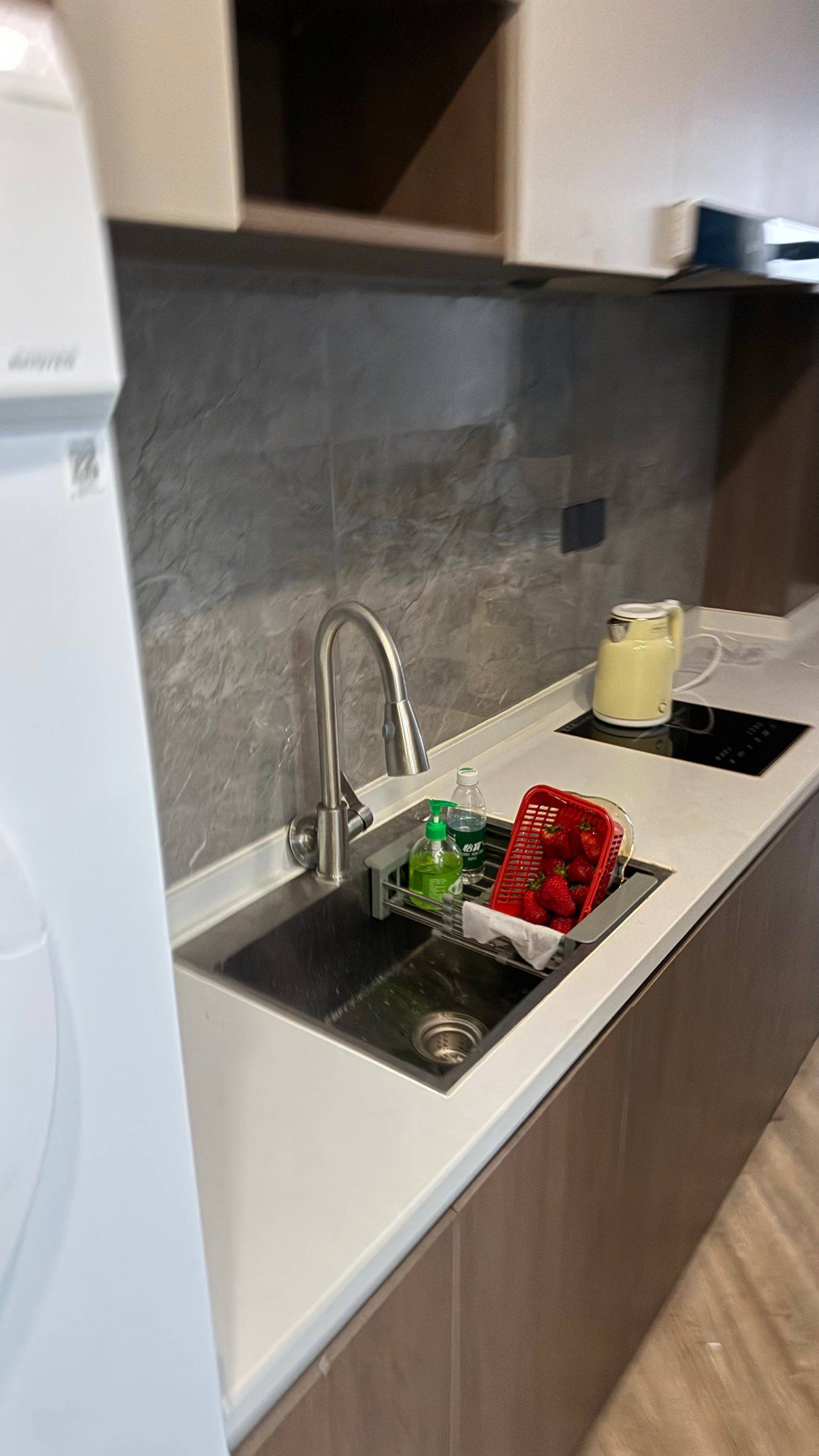 沙发,餐桌+2把餐椅,写字桌,油烟机,电磁炉,烘干机、洗衣机,智能马桶便圈加热,卫生间很大,热水澡水压充足,隔音好。有健身房,免物业费免费上网,水5元/吨,房间里衣柜橱柜很多,储物空间足,回家的感觉,降压转租,物超所值