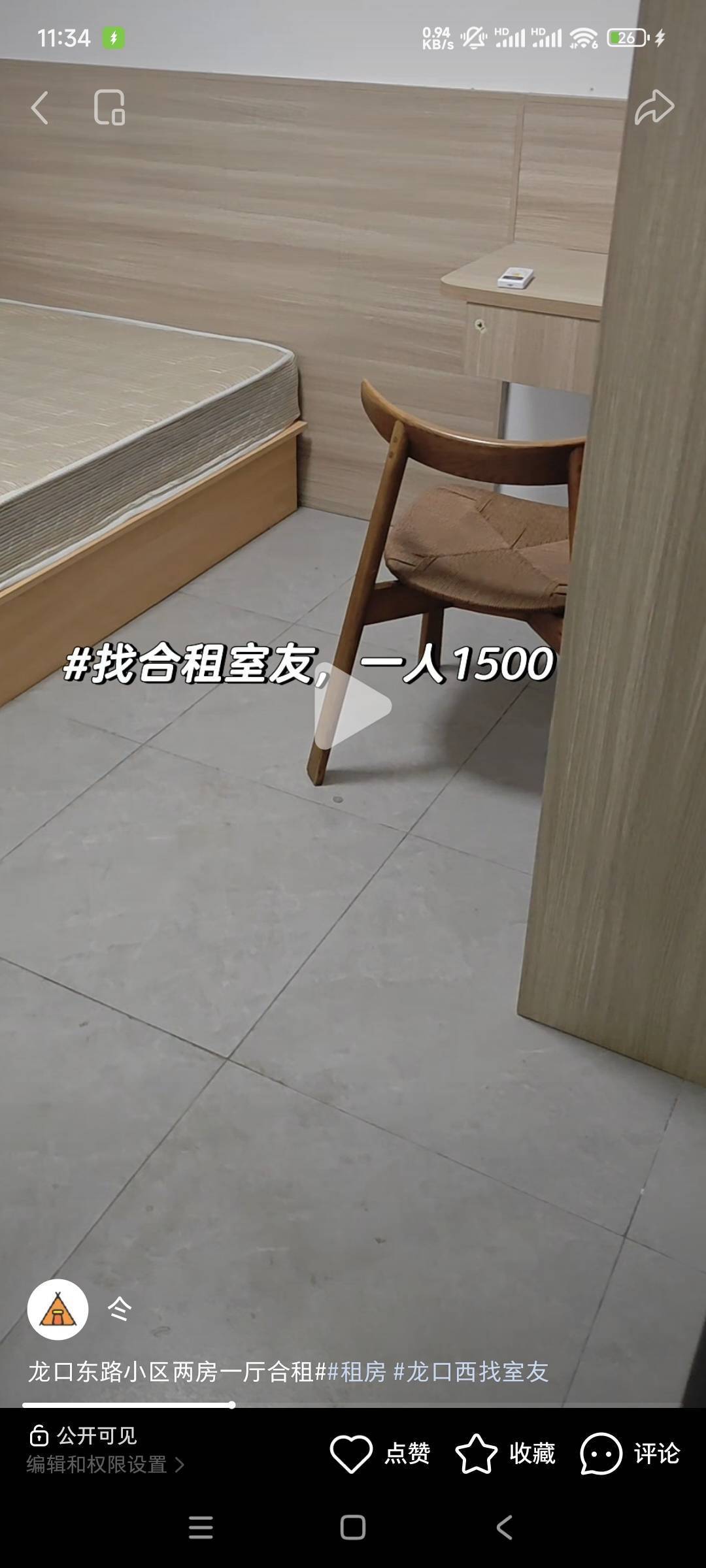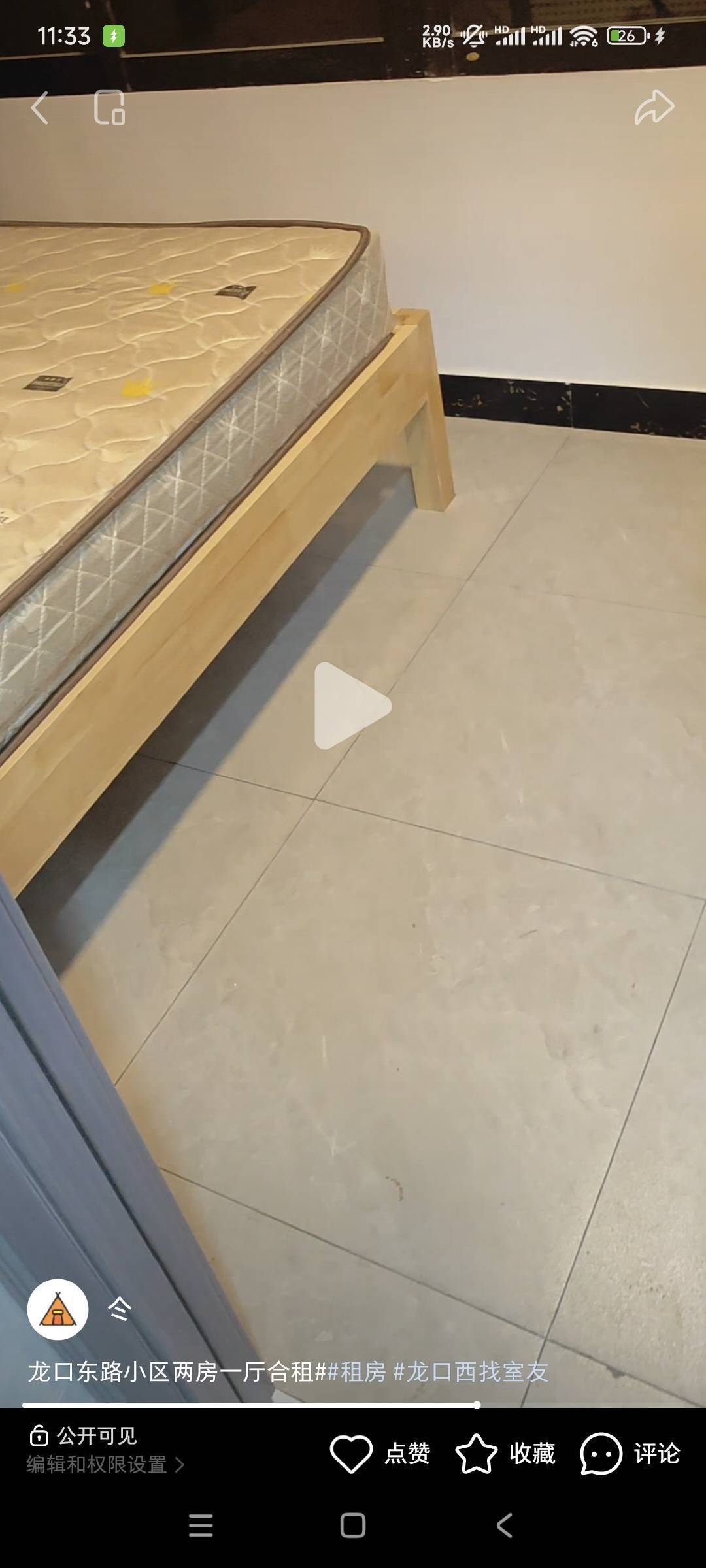 岗顶地铁200多米小区两房一厅合租,视频是晚上拍的,白天有光