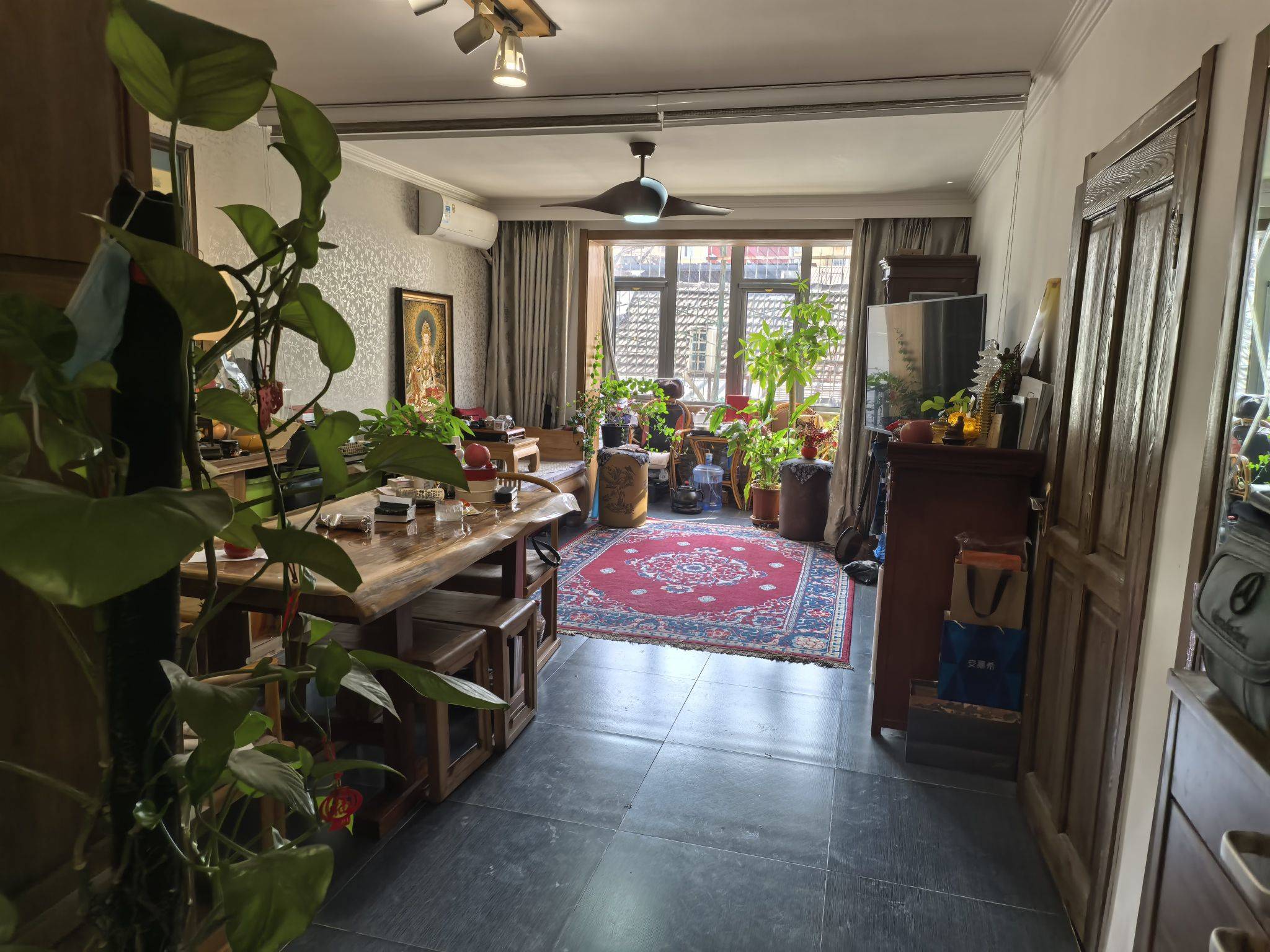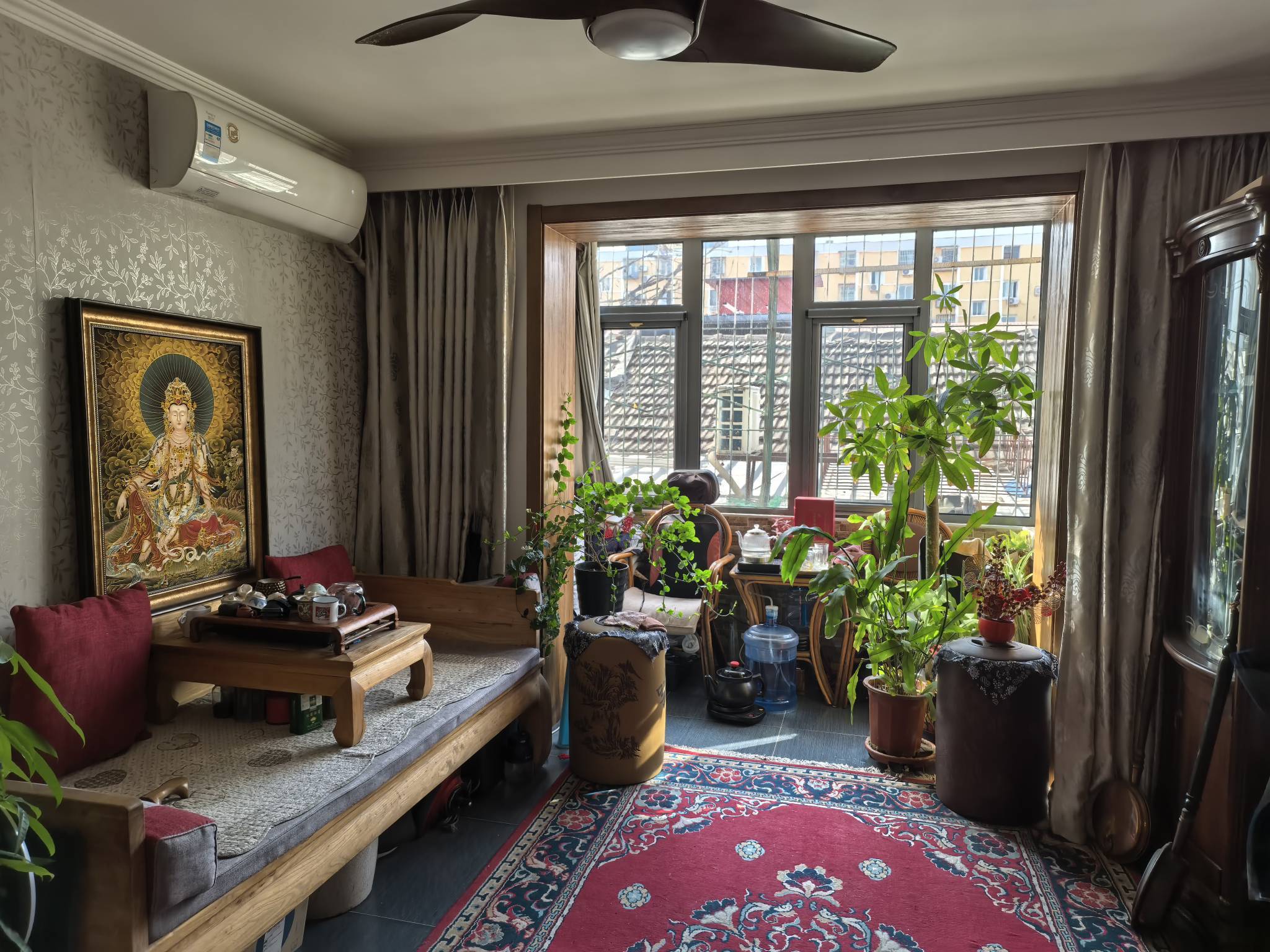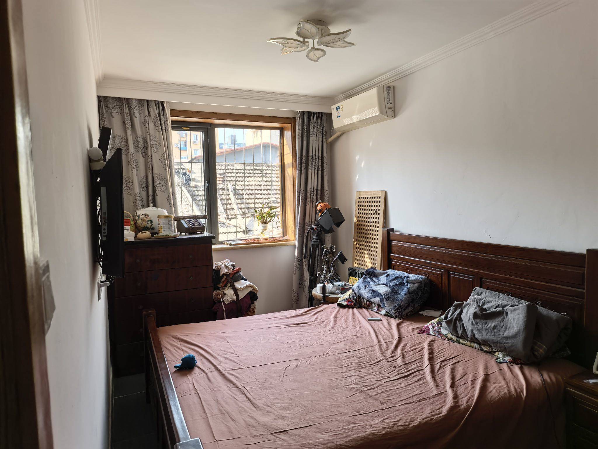 房子位于北二环,是干部家属院,六层中的二层,两个卧室朝阳,前边无遮当,客厅和卧室连体,四周拉上帘是大卧室,拉开帘是大客厅,北边一个次卧室,次卧里整墙一个大衣柜,出租后把钢琴拉走,次卧就大了。所有家俱都是高档实木雕花,客厅大板饭桌,既能办公,又能大家庭聚会。非常实用。适合一家人居住。