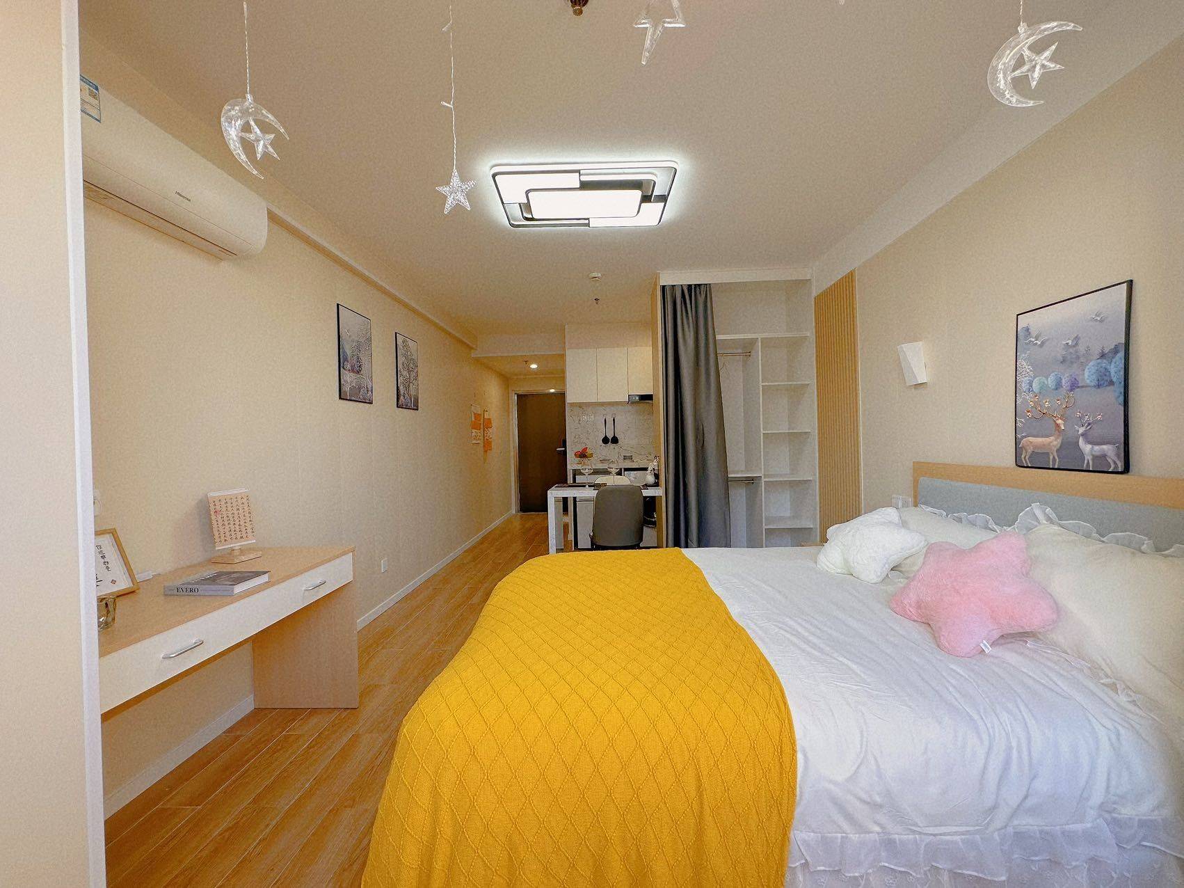 ,📍专为追求品质与活力的青年人群打造 坐落于上海松江区中山街道松卫北路862号三铭广场内,(商场内吃喝玩乐全都有 非常便利)步行2min抵达松江轻轨1号线/2号线🉑直到松江体育中心、万达广场、平高世贸、鹿都国际。地铁9号线可直达徐家汇、漕河泾、合川路等地 配置:电子密码门锁、TCL冰箱及TCL滚筒洗衣机、油烟机、马桶、独立开放式厨房、餐桌、电脑桌、床垫等家具(品牌家电 五脏俱全)