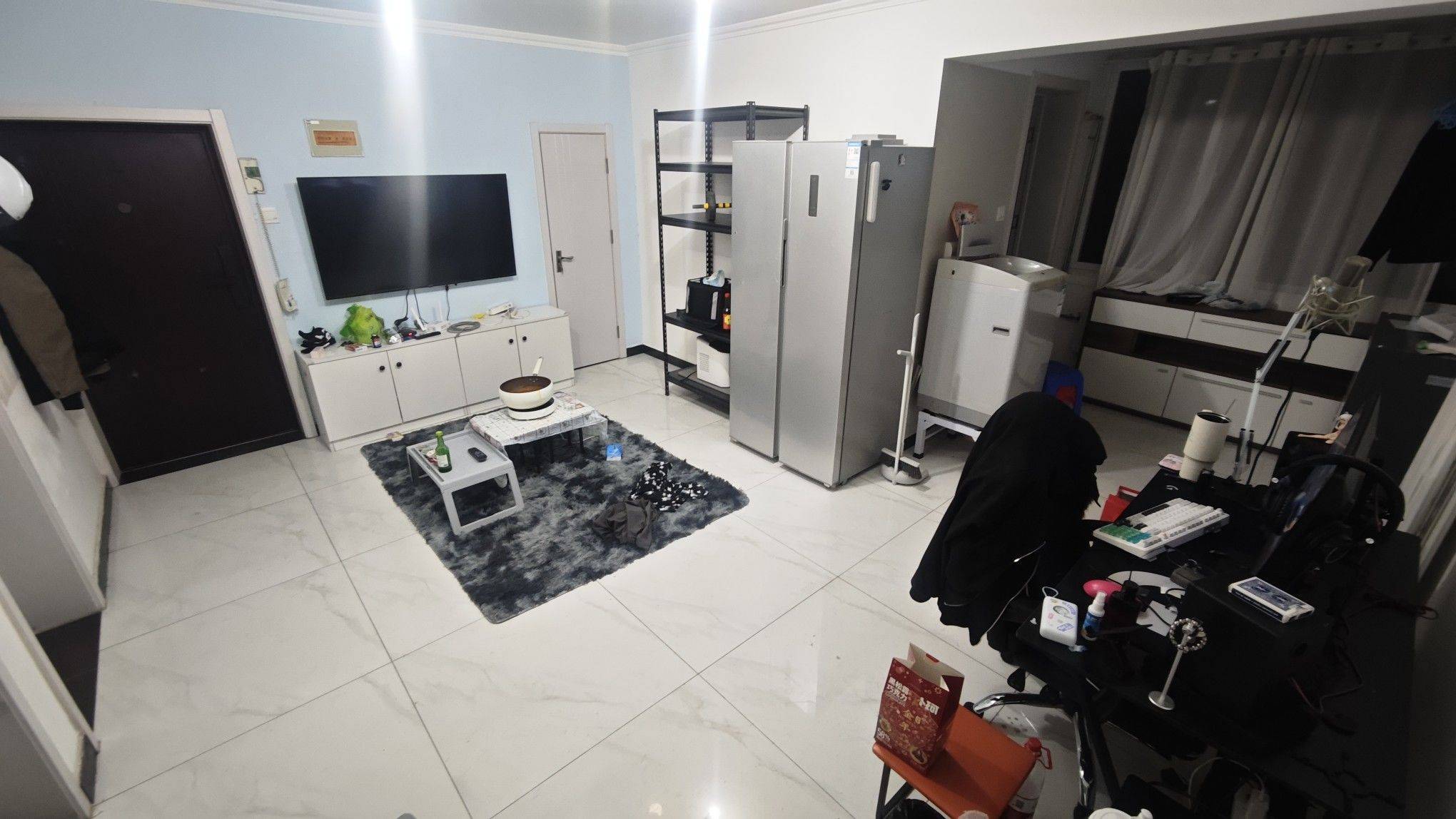 室友刚刚搬走 这个房子是我整租的两室3400 图中卧室相对我住的更大一些 租的话就还是均摊1700 房东包物业及暖气 除了1700和水电外没有别的杂费 客厅室友走后还没来得及收拾 交租方式是押一付三 房东很好说话