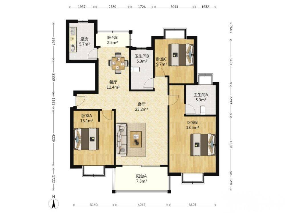 Rent : 7800RMB/M