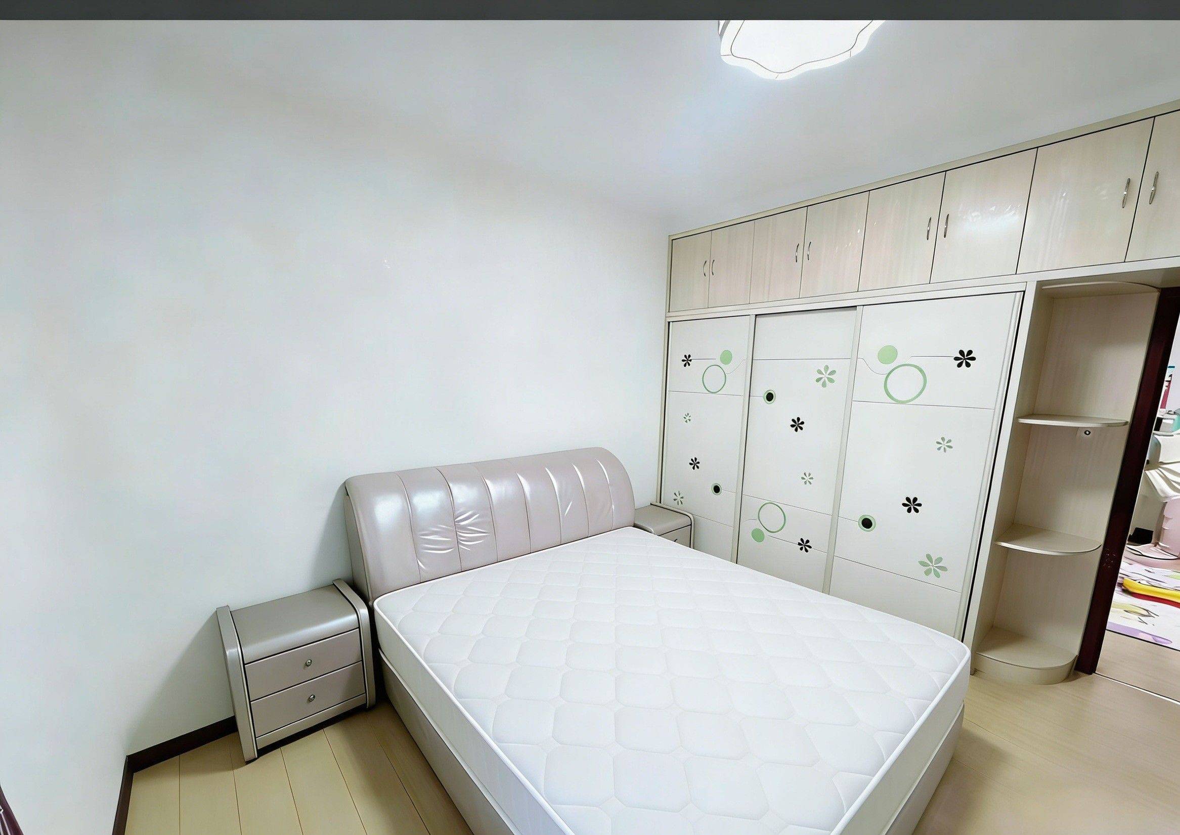 湖囗社区120平3房2厅1卫 1. 4 台格力空调,每个房间 1 台 + 客厅大空调 2. 大电视 + 宽带 + 热水器 + 微波炉 + 集成灶 3. 真皮床 + 好席梦思 + 沙发 + 餐桌 + 办公桌 + 大衣柜 4. 双阳台 + 采光好 + 电梯 5 楼黄金楼层 5. 小区中心位置 + 安静 + 近地铁 11 号线湖口站 6. 地下车库 + 停车方便 + 停车费便宜 7.楼下商超 + 民水民电 + 可做饭+生活方便