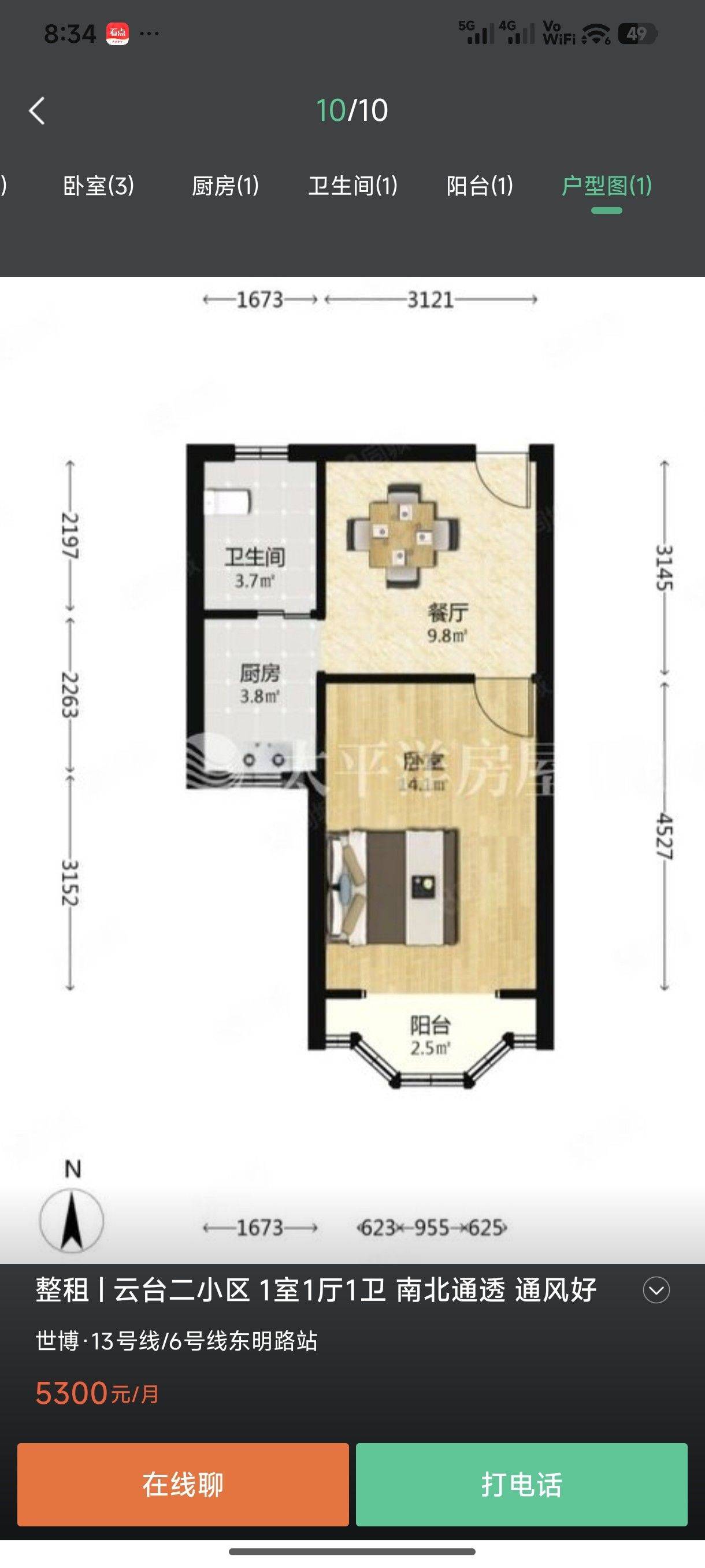 §内中环近地铁6/13号线云台路云二小区新精装1室1厅出租 电梯 家具家电配套齐全 公交可直达徐家汇八佰伴陆家嘴世纪公园张江金桥人民广场
