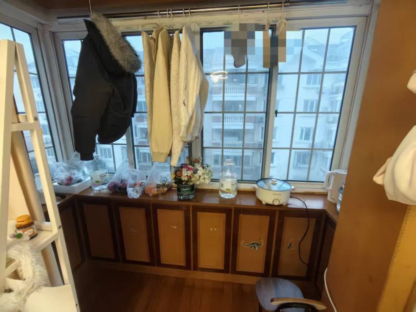 阳台的一排小柜子都是可以打开的哦,储物空间很大
