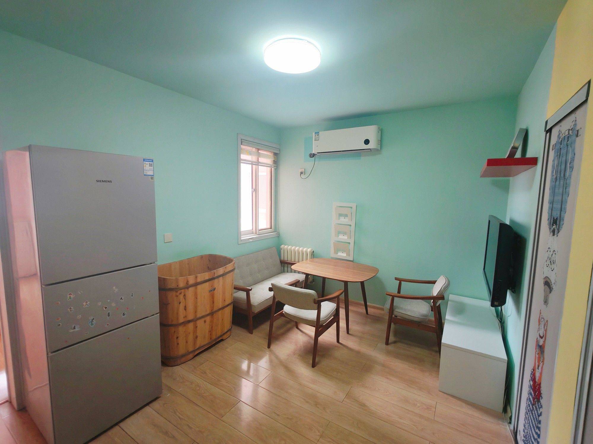 房子朝向是西南,下午阳光特别舒服暖和。 格局是一室一厅一厨一卫,分隔清晰。 墙面颜色比较年轻化,厨卫都是刚刚做过保洁,不仔细看会认为是新房一般。两部空调都是新换的不久。 毗邻国贸CBD,位置在东三环往东500米,配套非常全、方便。 小区安静整洁,业主住户素养普遍较高。 附近有团结新里时尚餐饮区,团结湖公园可以享受惬意悠闲时光。