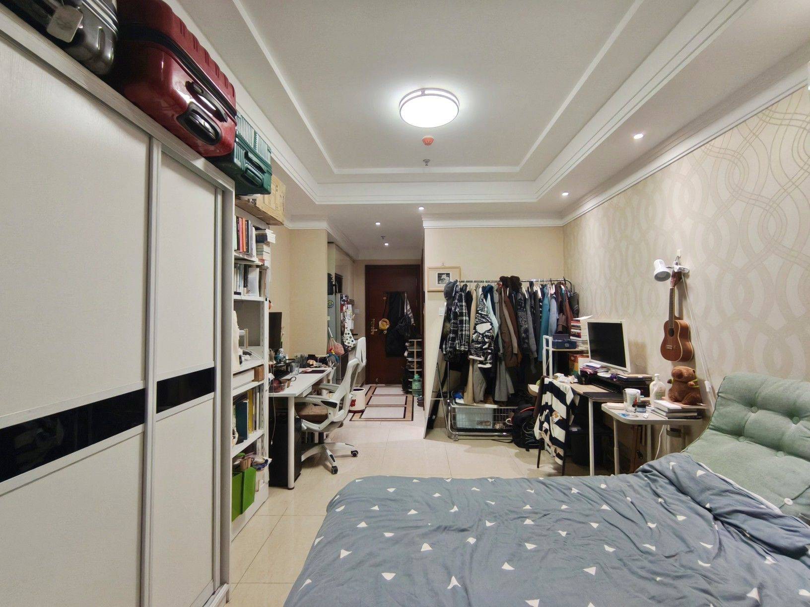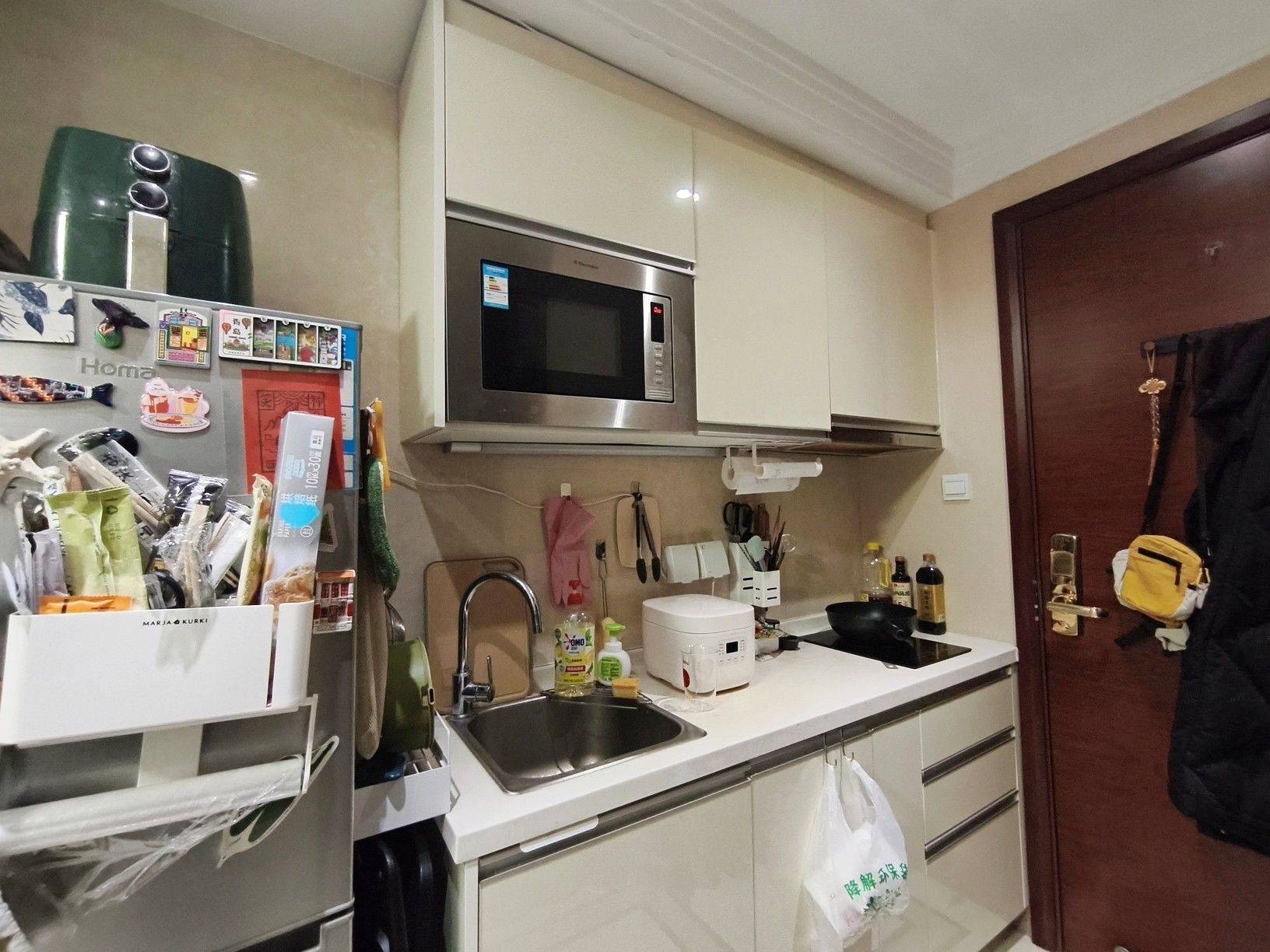 个人转租常营地铁一居室,转租不需要中介费。 因为工作地点搬迁,所以被迫搬离。房物干净整洁明亮温暖,大窗采光好。嵌入式微波炉,带照明收缩式抽油烟机。目前是两个人住,所以客厅安排了两个电脑桌,如果不需要可以放置沙发,效果参考图8。 小区距离地铁500多米举步即达,周边商圈有常营天街,陆港城,fudi,华联等非常方便。小区环境好,楼下24h便利店,健身房,干洗店理发等一应俱全。一栋4部电梯,刷卡+密码锁,保安24小时轮值,物业非常负责。安全度拉满。