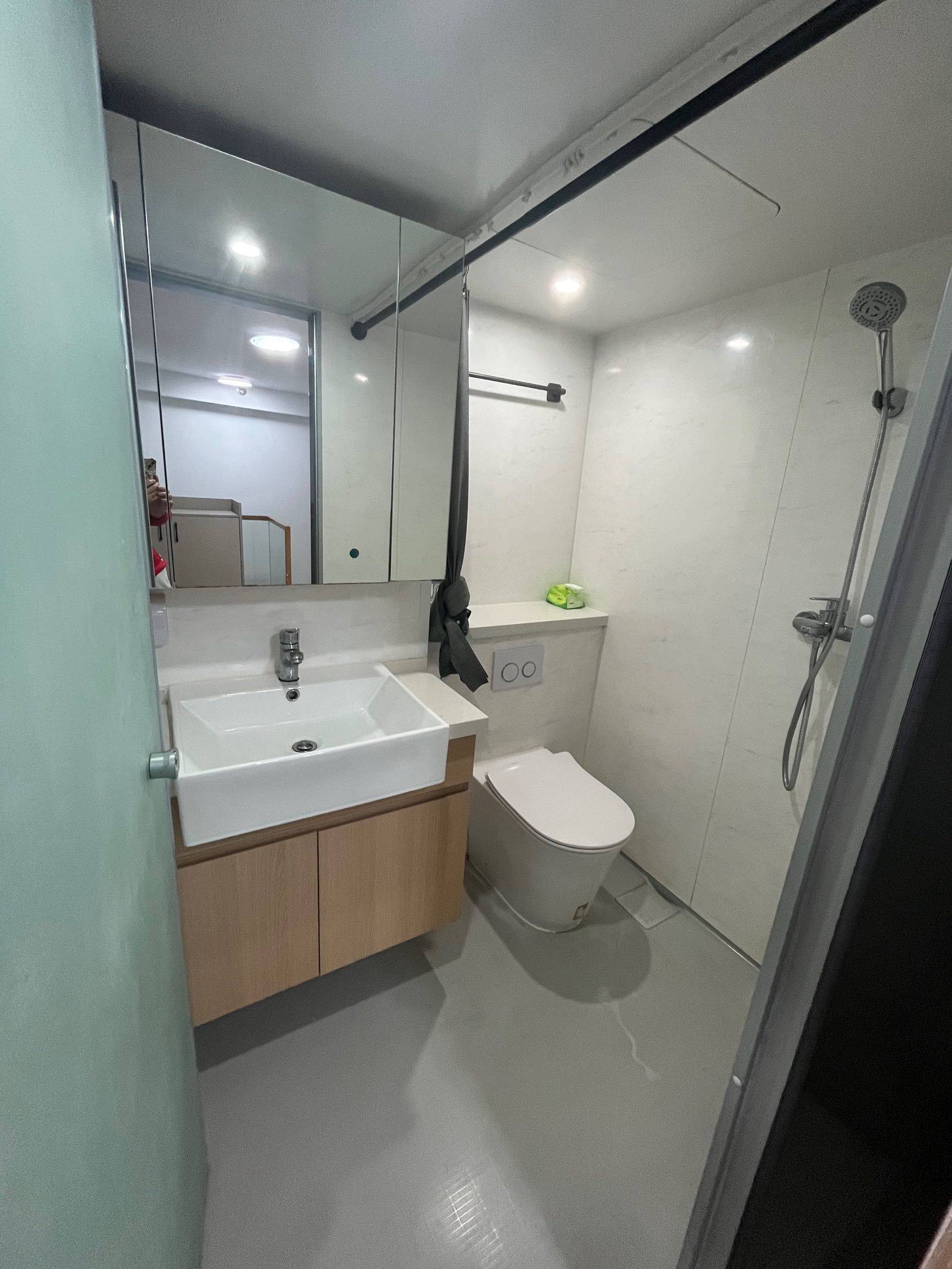 5、地面为温暖的木地板;卫生间为整体卫浴;