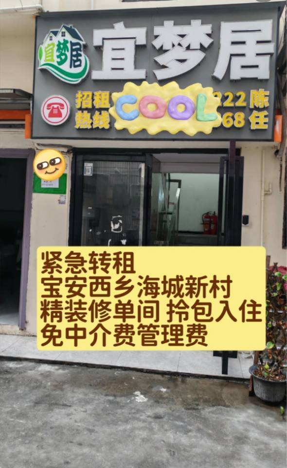 转租海城新村精装🏘单间 1.转租原因:由于个人工作原因,需要急转租出去,不是中介,不会收取中介费喔! 2.房子情况:本房在【五楼】,【顶楼】精装修单间,晚上不吵,环境也不错; 3.房租【1300/月】(原1380,剩下我补贴),【押2000】,民水民电,没有中介费、物业费、管理费, 省心省力可直接拎包入住; 4.家电设施:洗衣机,热水器,空调, 桌子,椅子,衣柜,床,冰箱,WIFI。 5.地理位置:深圳宝安区西乡海城新村,近坪洲地铁口,步行8~10分钟到地铁口,小区门口有公交站,上班通勤方便 6.周边设施:楼下有多处快递驿站,拿快递超方便,楼下小吃品类丰盛😋如视频所示单间