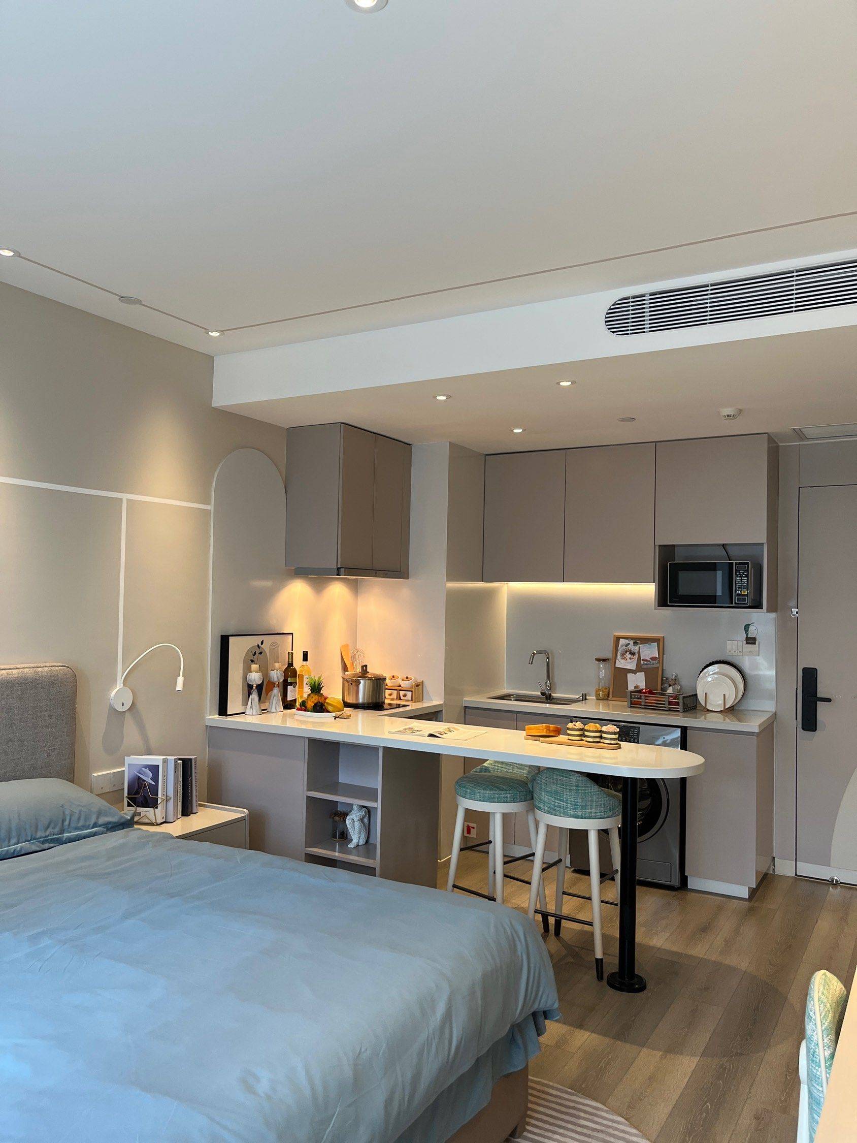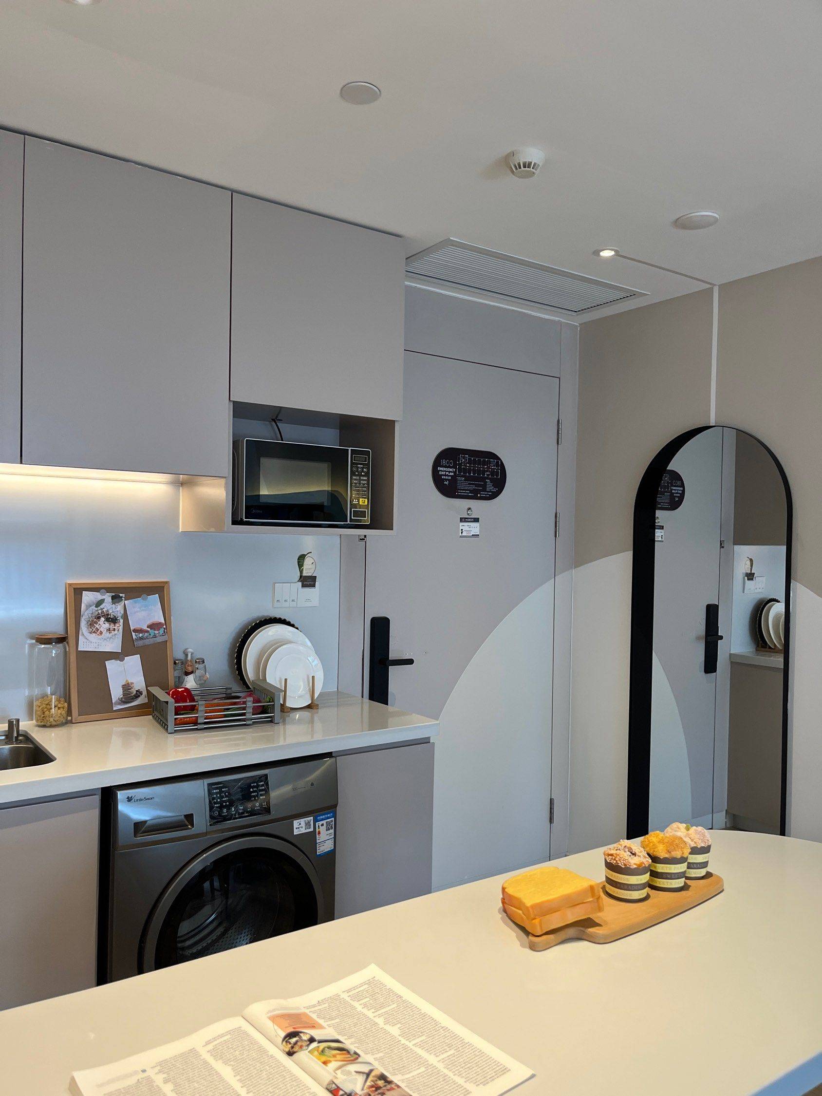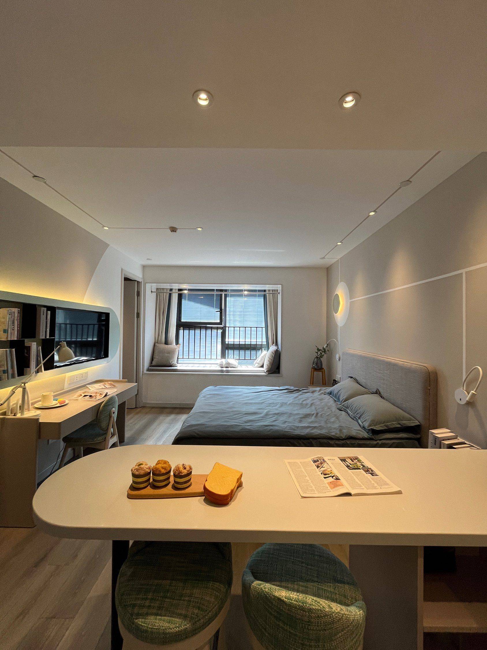 一室套房+衣帽间,有一个飘窗阳台,平时烧饭岛吧台也特别方便。 卧室的飘窗,躺着就能看到窗外的四季变化,平日的小猫咪也可以晒晒太阳 全屋实体墙,隔音超鸡棒👍🏻客厅和卧室都有空调 小区环境绿化也全覆盖,一年四季变化分明,春天能看到樱花🌸小区外面还有很大片的油菜花,在过10多天又会有两三亩地的小雏菊盛开 本人处女座有一些洁癖,所以房子收拾的比较干净 房间整体住的比较舒服,到地铁站有4公里(有点小缺点)但是社区有专线大巴车接送到地铁口,车程在10min 交通便利的,9号线通勤到徐家汇或者漕河泾都是地铁直达 生活上 附近2公里就是万达广场,4公里是印象城。周边还有玛雅水上乐园。楼下就有星巴克,便利店和瑞幸咖啡。社区配套免费健身房,公共厨房,阅读室,办公厅,台球室 最值得说明的是,房间有家电损坏都是免费维修,基本是随叫随到极速响应