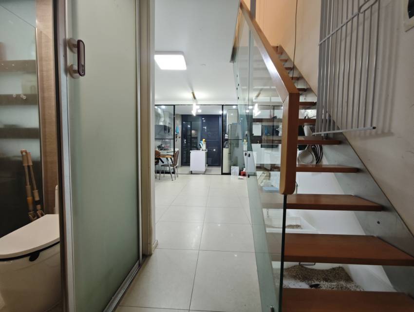地址:均胜翡翠湾1号楼3楼 租期:6.15为止。 户型:复式loft,1室2厅1卫2阳台,做了2室,单层49平,上下总共89平。民电商水(8毛一吨) 转租原因:家里人来宁波,4个人,2室住不下。 优点:1、主卧室大落地窗,采光好。 2、层高高,正常loft5.2米,翡翠湾只有3楼层高5.9米,上下俩层都不压抑。 3、隔音好,实体墙,且邻居安静,不吵,小区门口马路车少噪音也小。 4、双阳台,一般loft都没有阳台,翡翠湾有2个,上下个一个,可以晒衣服。 5、燃气灶做饭。 6、租期短,6.15到期,差不多2个月,适合短租。 7、安全,楼梯有梯控,且因为在3楼,外卖可以走楼梯送上门。 缺点:西北朝向。商水。 有意请联系,这俩月低价转租,后面喜欢可以自己跟房东续租。包物业包千兆网。