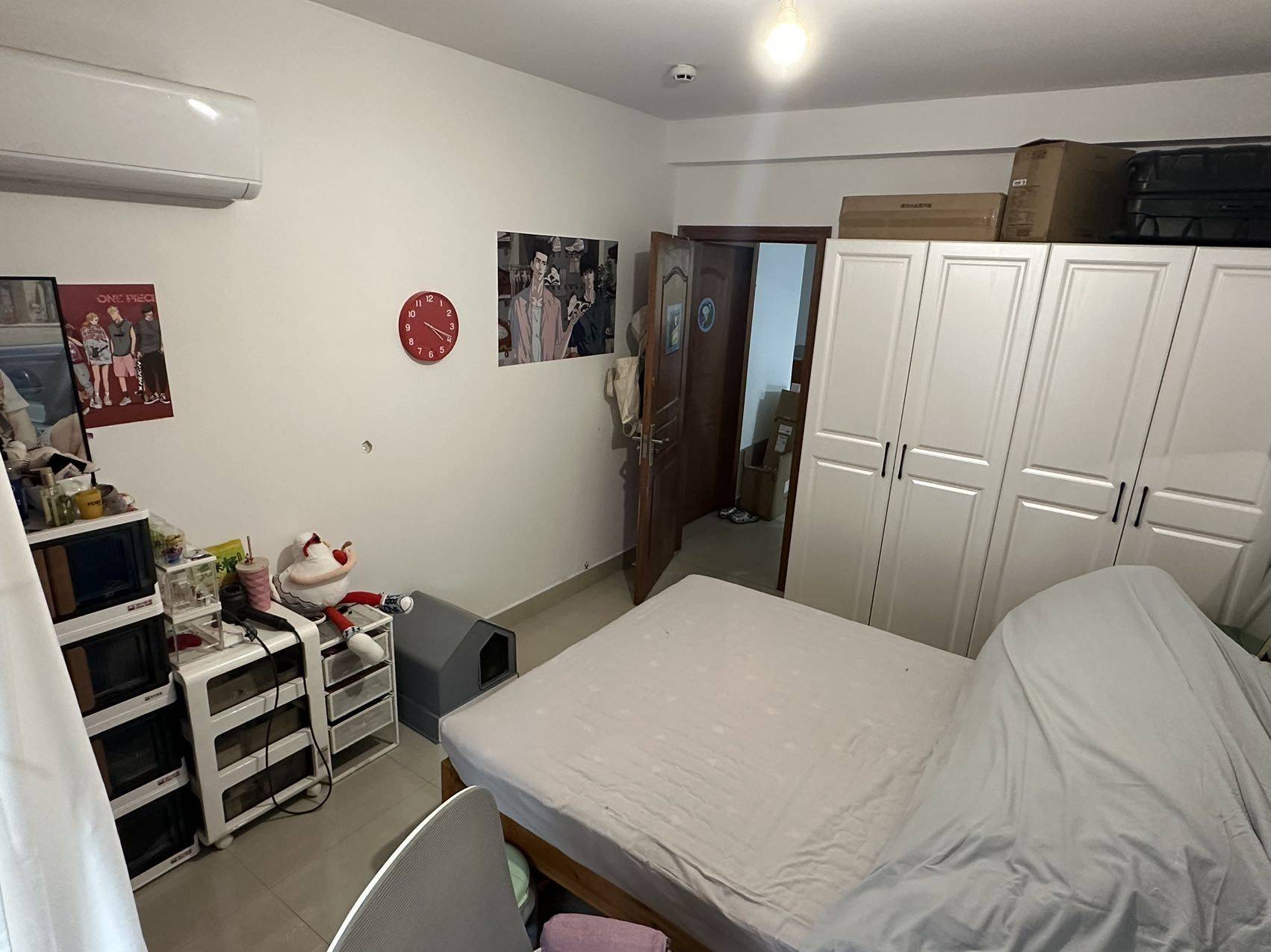 是合租,出租一个朝南大飘窗房间,原来这间房是我朋友要搬走了,和另外一间房女生共用一个洗手间,很便宜也很大。可以做饭,厕所热水器水量很大,可以洗很多人不用担心,这个房间空调是最近才换的。二楼,下楼就是小区门口和丢垃圾的地方,出门回家进出很方便,晚上回家也不会害怕。小区门口就是公交车站,去地铁站十几分钟。包Wi-Fi,水电费均摊,要长租一年的哦~