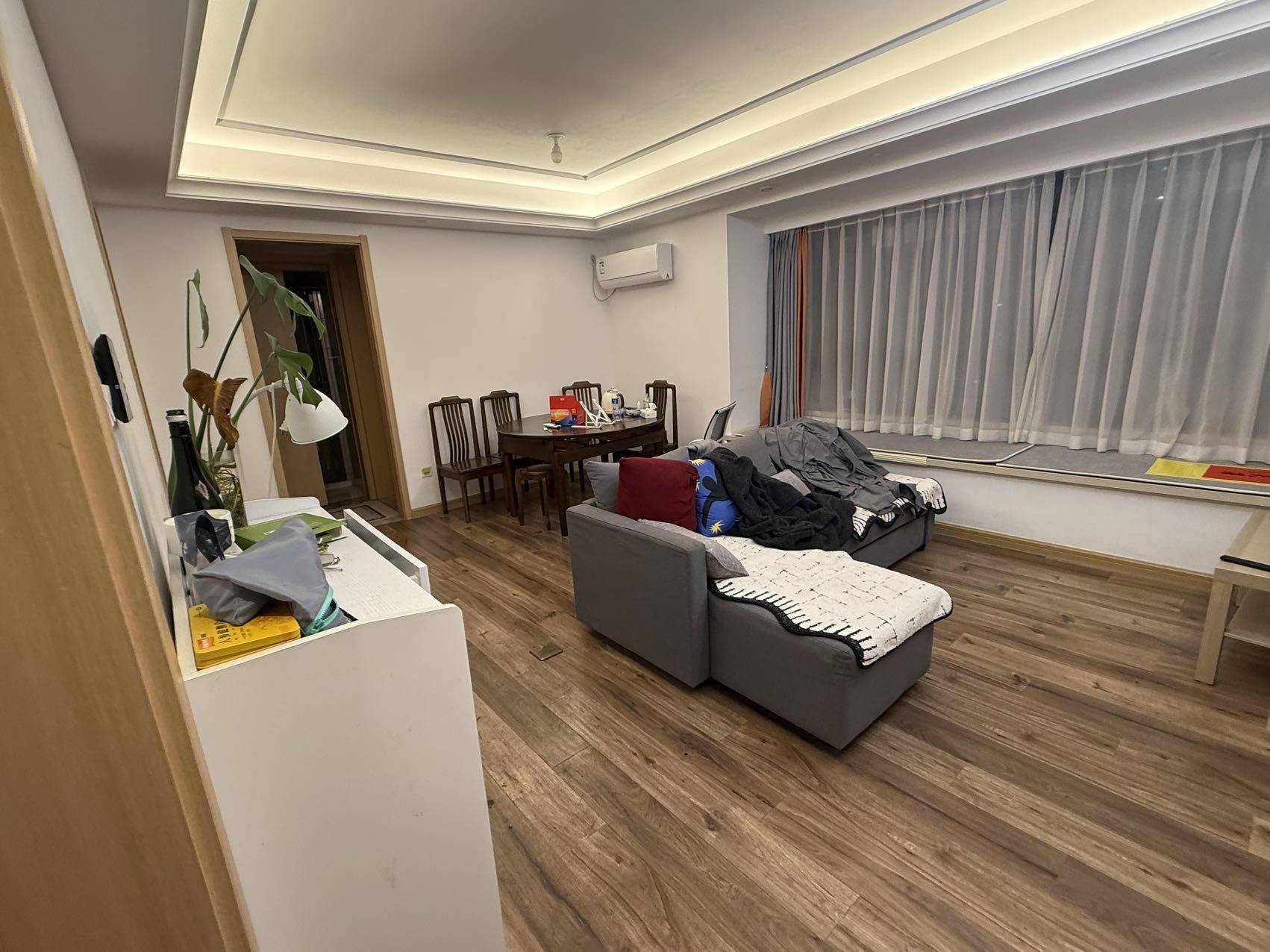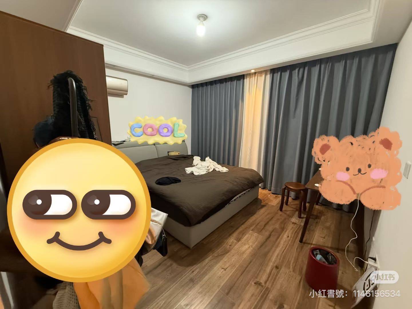 转租!!!短租或长租。 公司搬迁太远了,房租交到了四月底,合同签到7月底左右。 4200一个月,我住的主卧2200一个月,因为房间里带厕所(厕所真的很大)室友是个男生,人好事儿少,是我的朋友。他下午到晚上凌晨上班,所以如果是正常朝九晚五的工作,基本碰不到人。 男女都可以住,情侣也没问题。 民用水电,夏天和冬天开空调一个月最多200多的电费。 房东人特别好,这个小区物业也很负责,有问题直接找物业上门维修就好。 房子是商品房,不是拆迁房,一梯一户,低楼层,一共十几楼。 特别安静以及房子装修都是精装修,家具什么的都是原木的,整体住着确实很舒服,不是工作原因我也不搬。 好像是110平方米,还有一个小房间我们拿来做仓库。 最近的地铁在潘水,离地铁站700米,商铺特别多。 小区名字:珺悦府感兴趣的私我! 对TA的期望:爱干净 该房源位于旭辉•珺悦府