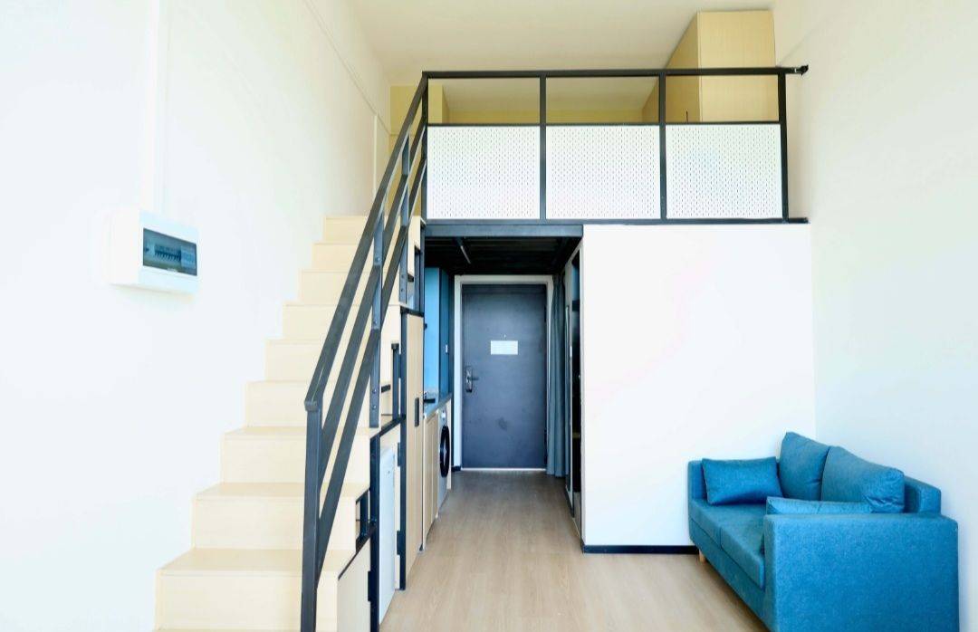 loft 复式,上下两层,空间通透不压抑,采光特别好,白天基本不用开灯。楼上是卧室休息区,楼下是客厅+厨房+卫生间,动静分离,私密性强。整体风格简约干净,温馨舒适,一个人住或情侣住都非常舒服。 【户型亮点】 层高足够,不压抑;楼梯不陡,上下方便;储物空间多,衣柜、收纳柜齐全;客厅开阔,适合办公、追剧、朋友小聚;厨房独立可用,卫生间干净整洁。 【家具家电】 家具齐全:床、床垫、衣柜、沙发、书桌、椅子都有。 家电齐全:空调、洗衣机、冰箱、热水器、Wi‑Fi 全覆盖,拎包入住。 【位置交通】 位置便利,周边生活配套成熟,超市、餐饮、快递点齐全;通勤方便,地铁/公交便捷,日常出行无压力。