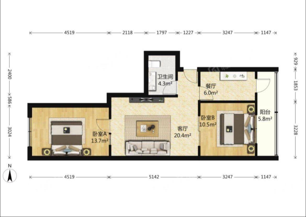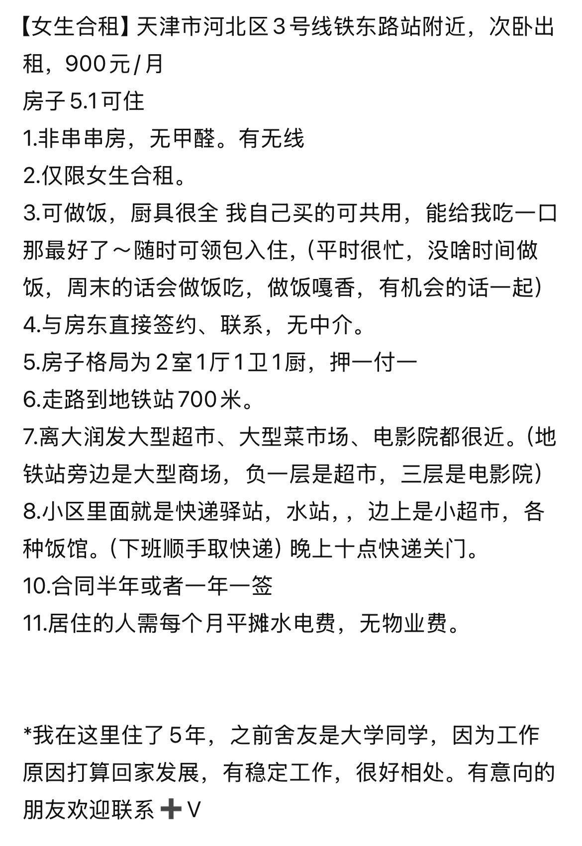 Rent : 900RMB/M
