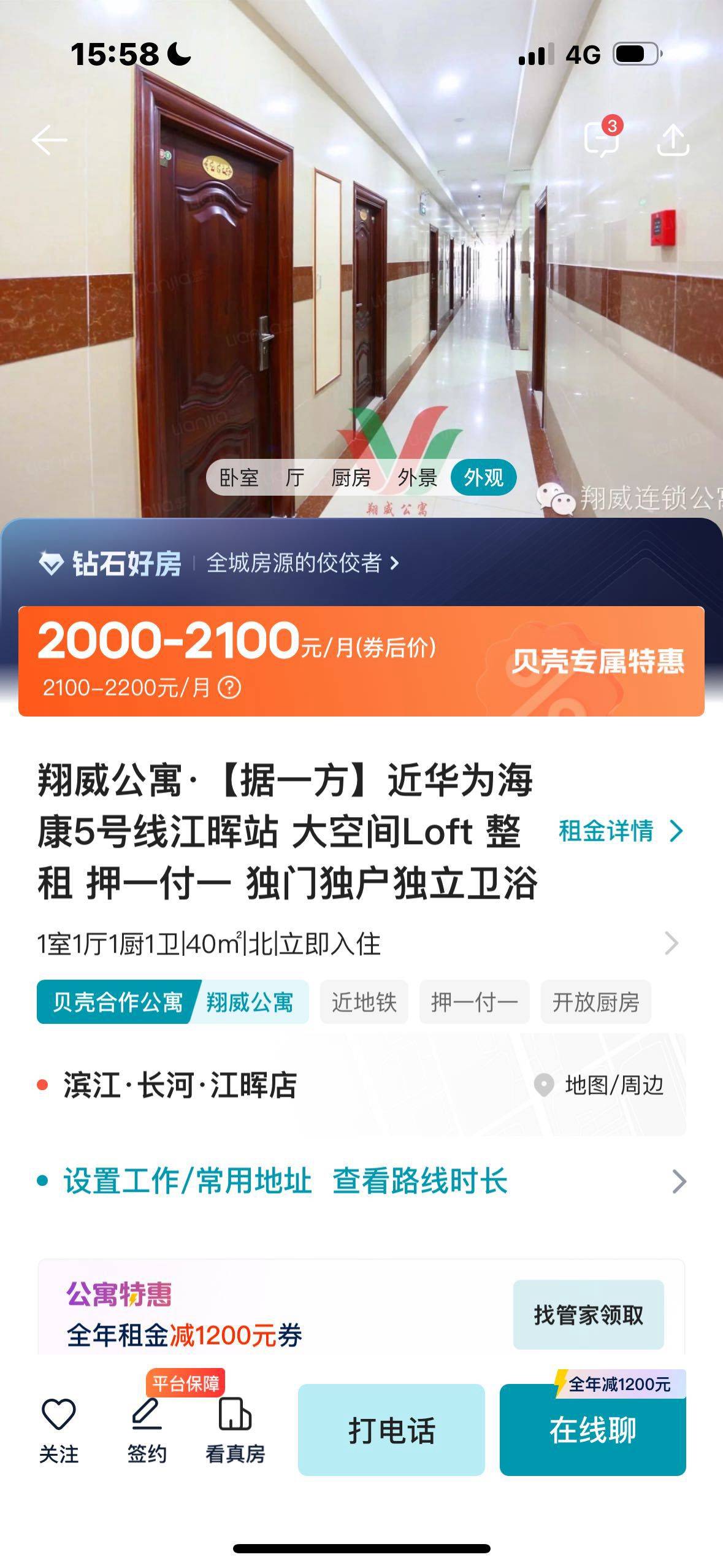 Rent : 1000RMB/M