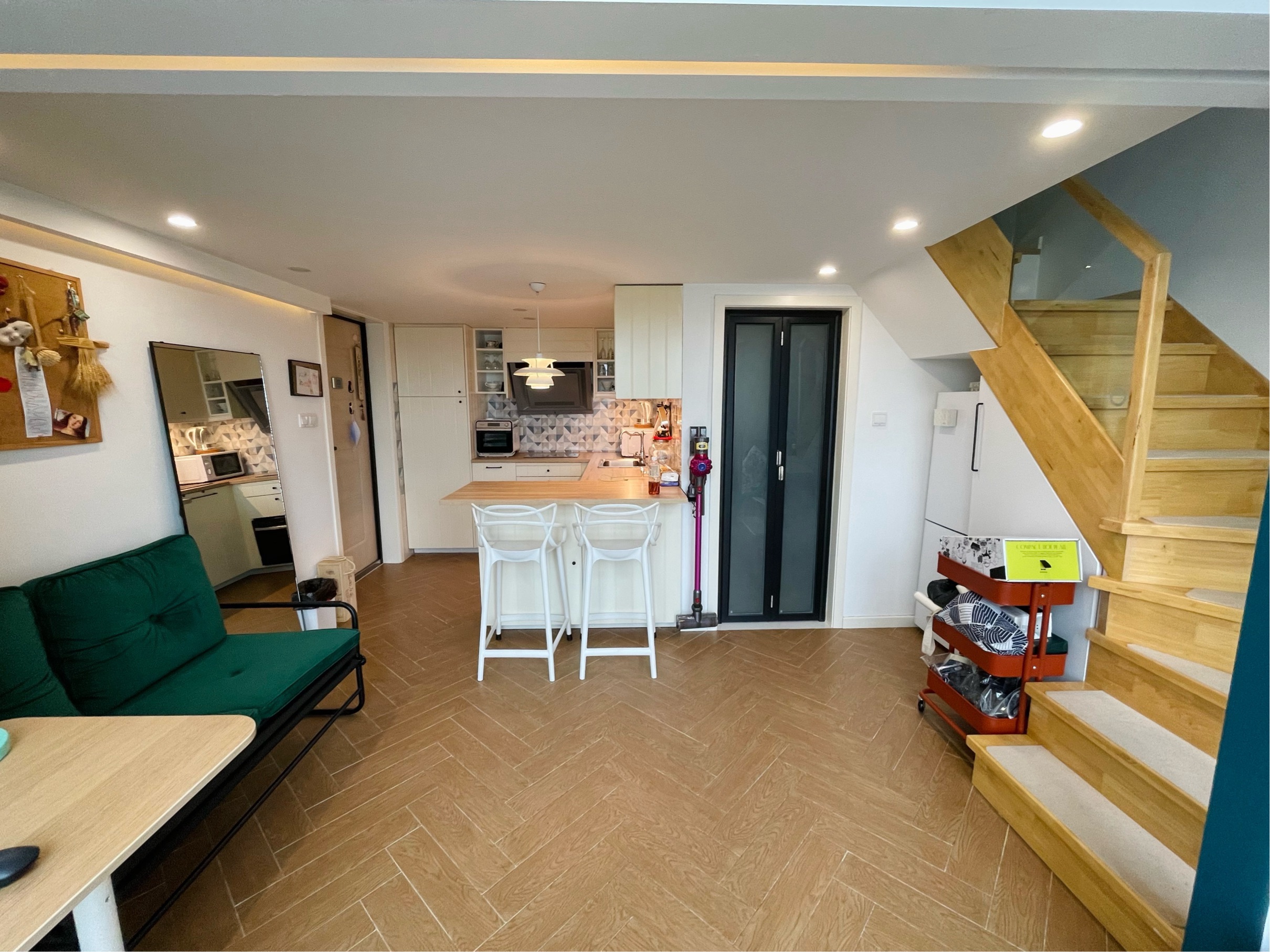 I'm looking for a tenant for my apartment. This apartment is fully equipped with furniture. Hope you can keep it tidy and clean. ⚠️入住时间: 已经打扫干净! 随时拎包入住! 包网费wifi 包物业费 拎包入住 房子在百联中环附近 静安寺、武宁路、长寿路、上班💼看过里 地铁🚇14号线 真心新村地铁线500m步行。 步行7min地铁,16min直达静安寺。 地铁静安寺通勤30min内。 地址为嘉定,但这个嘉定角是凹在普陀里面的。 楼下地库方便停车适合开车🚗人士。 地库还有洗车店。特别方便。 楼下是老普陀的梅川路步行街全是吃的、中环百联。 本人设计从业 自有商住公寓 自己设计装修 朝向东南 风景超棒 可远观mini陆家嘴三件套 四年前自己费心装修 家具齐全 戴森吸尘器、西门子洗烘一体洗衣机、洗碗机、蒸烤箱、 一应俱全、意大利瓷砖、科勒卫浴… 押2付2 类民宿的拎包入住 连枕头、锅子、碗盘、烤箱、电热毯都有 目标租客:单身公寓,爱干净整洁的女生,高素质单身白领留学生或者无宠物情侣入住,或者没有破坏力的mini宠物主人。💗 电器配备:Wi-Fi,中央空调,热水器,洗碗机,西门子洗烘一体洗衣机,冰箱,蒸烤箱,电视机,烧水壶,吹风机,电子门锁,门铃。 实拍所见即所得。戴森吸尘器也留给租户使用。 产证一层45平, 两层实际落地面积57平米左右。 衣柜超级很大!鞋柜超级很大! 还有个墙体内嵌4平米储物柜! 基础生活用品啥都有,拎包入住。 类民宿宜家被褥,锅碗瓢盆全齐。 电费商用1元一度。水6.8元一吨。 房租包含wifi网络。 有电视机有盒子 可投屏。 停车🅿️300元每月半年一交。 地库就有精洗洗车店。