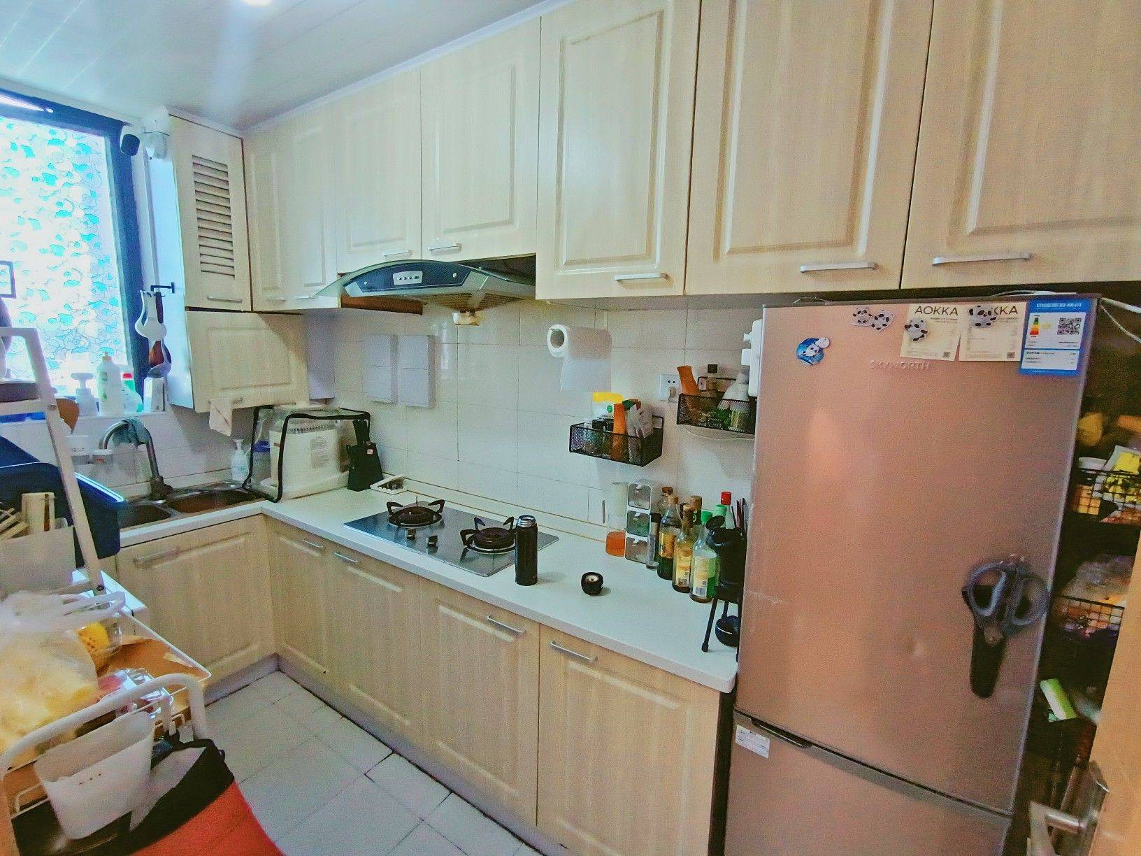 金淞家园2室1厅90平、3面阳台、明厨明卫,南北通透,两梯四户,次顶层,可短租3个月起租或长租。周边配套齐全,距地铁2号线步行7分钟,10分钟至携程、宜家、大融城、苏河步道等。 随时预约看房。 Jinsong jiayuan, 2 bedrooms, 1 living room, 90 square meters, 3 balconies, kitchen and bathroom with windows, south-north orientation, second highest floor, 2 lifts for 4 apartments. Available for short-term rental (minimum 3 months) or long-term rental. Complete surrounding amenities, 7-minute walk to Metro Line 2, 10 minutes to Ctrip, IKEA, Changning Art Park City, Suzhou River Path, etc. Inspections can be scheduled anytime.