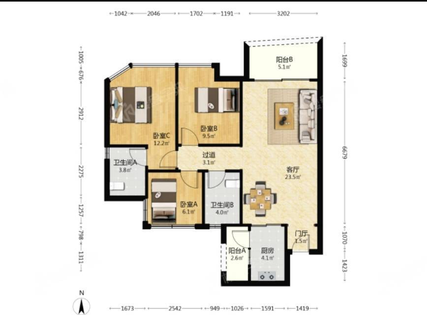 房間3臥室/2洗手間