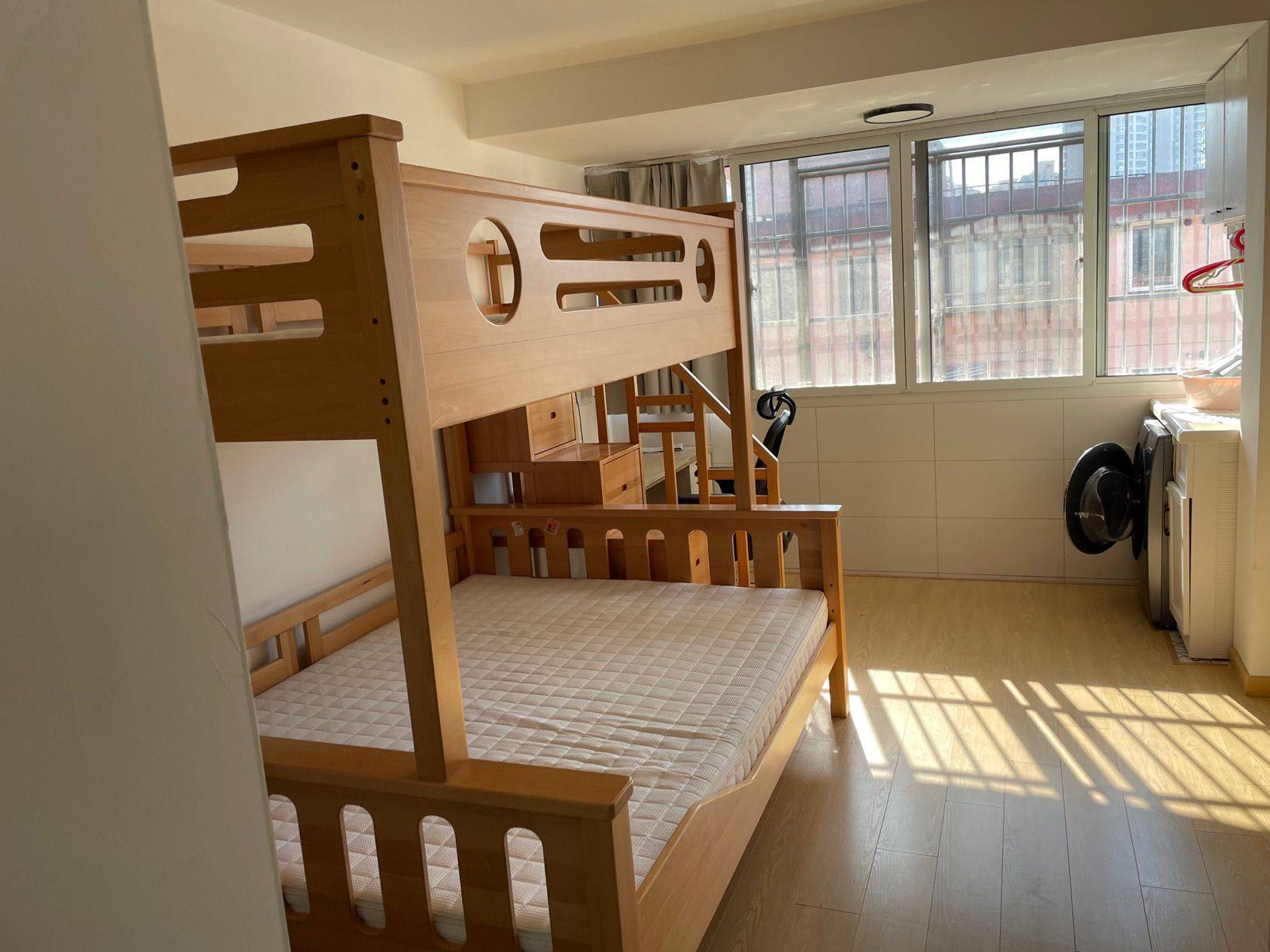 民星二村,一室一厅6楼边套带电梯,38.4平米,近八号线嫩江路地铁站。 26年5月初可租 老板灶台抽油烟机,能率燃气热水器,300L松下智能风冷冰箱,电热毛巾架,小米电视,海尔洗烘一体洗衣机(热泵烘干,衣物松软不褶皱),网易严选人体工学办公椅,爱格板厨房定制橱柜,双层实木床(下层1.5米,上层1.2米),两个1.5米宽衣橱保证置物空间,铝合金双层玻璃窗(保温降噪),高压水泵保证水流强劲淋浴畅快。边套南北通透,采光通风俱佳。 小区离8号线嫩江路站500米,周边配套齐全。大润发超市,星巴克,海底捞,电影院,民星公园,乐刻健身房,羽毛球、篮球、足球场,游泳馆都在500米范围内。 原木风软装,温馨自然。 适合闺蜜拼住,情侣自住,一家三口陪读居住。 付三押一, 月租4500元,一年起租。